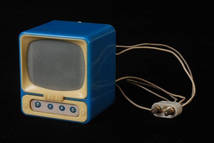 Gekleurd half cilindrisch blik Van Melle Toffees met...