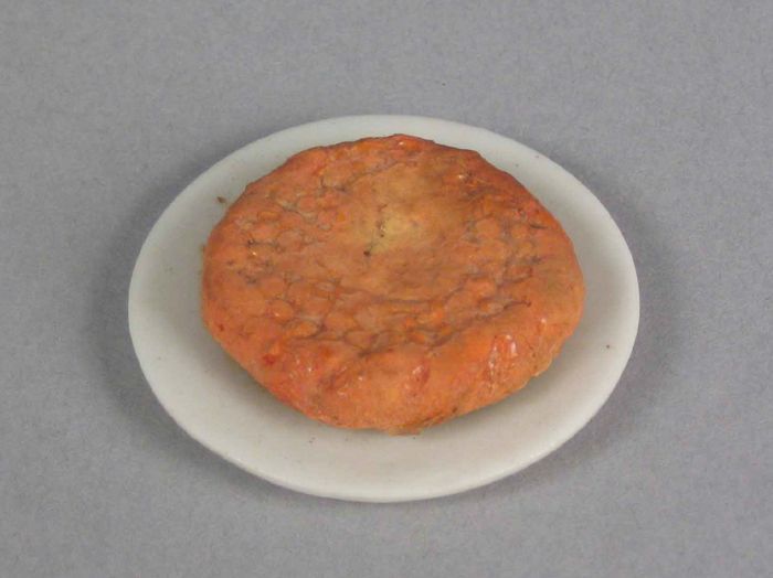 Rond dienblaadje van doorzichtig glas, waarop zes ma...