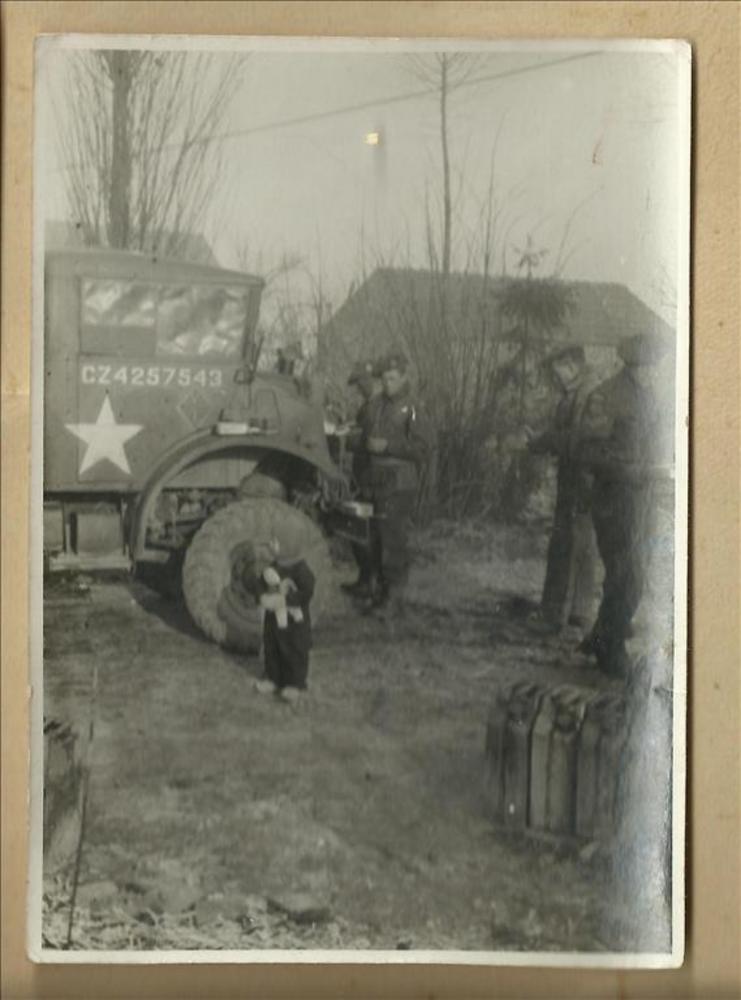 jong kind voor militair voertuig in Malden, septembe...