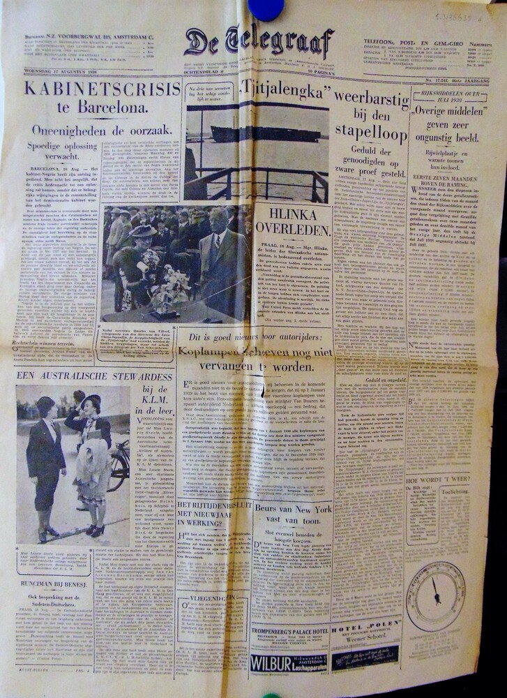 "De Telegraaf" van "Woensdag 17 augustus 1938" "Ocht...