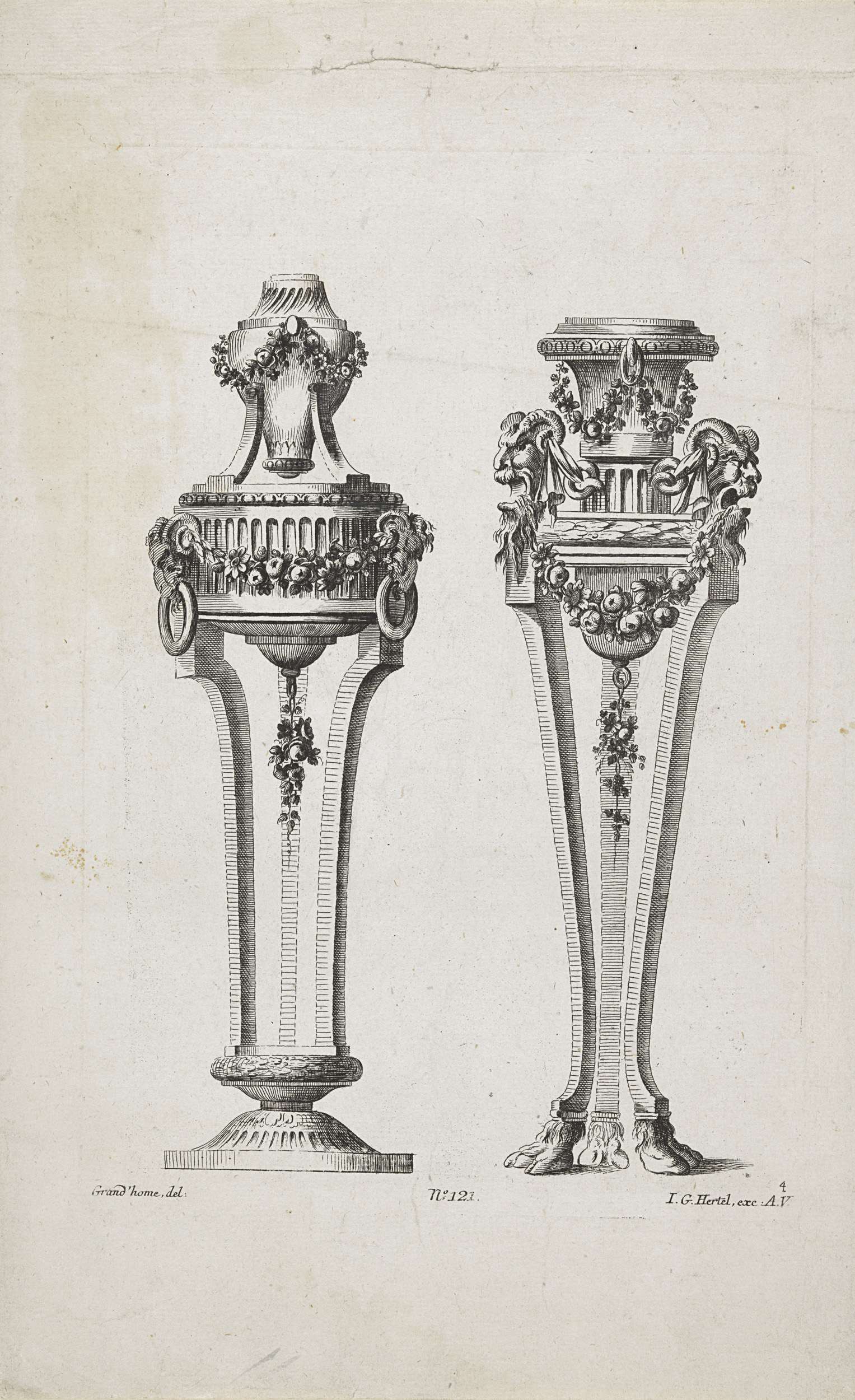 Twee voetstukken met guirlandes
