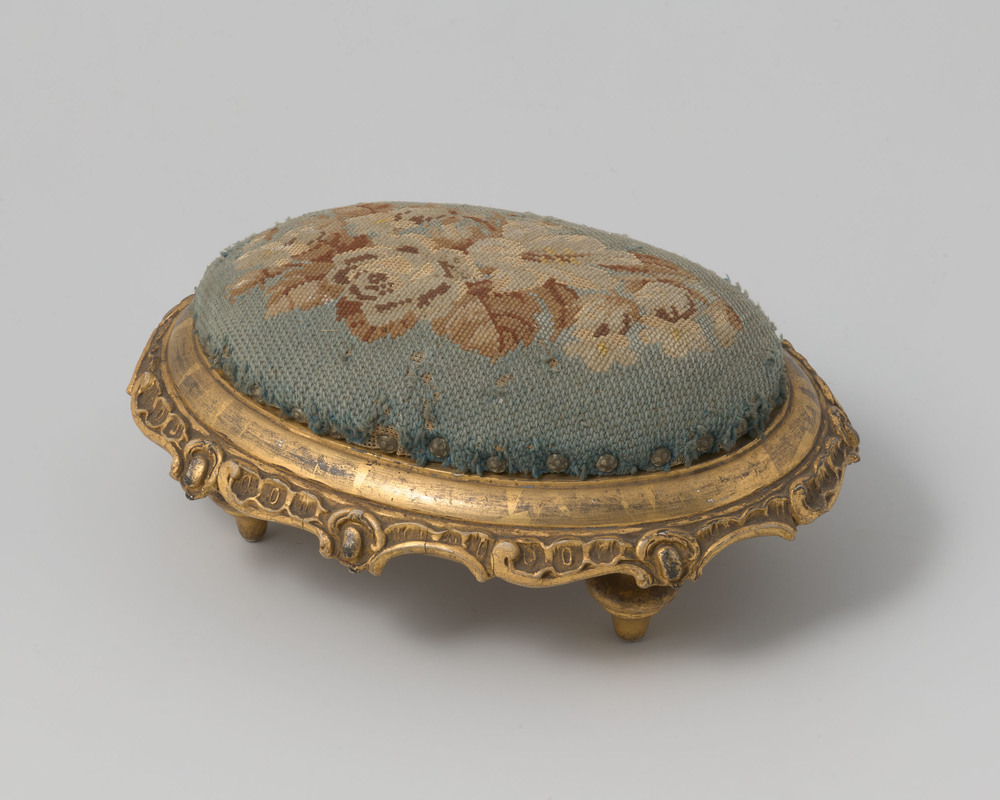 Voetenbankje met geborduurde stoffering