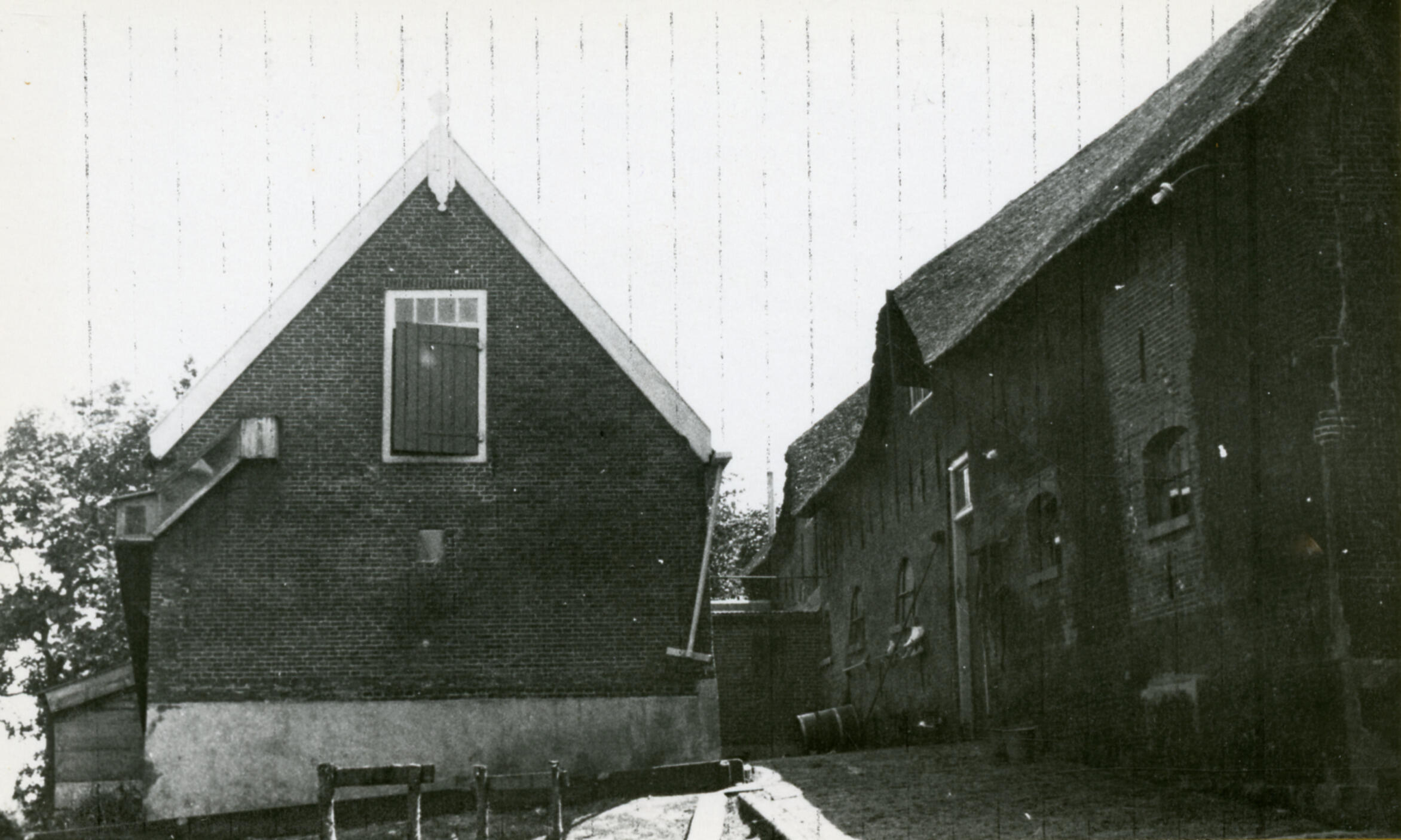 Schuur en boerderij, Haps, 1933 (zwart-wit foto)