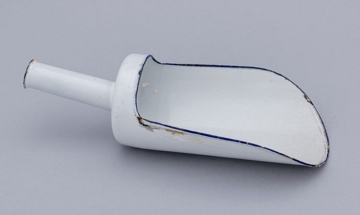 Witte emaille gruttersschep