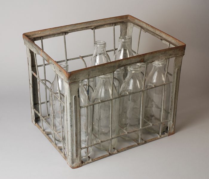 Metalen opengewerkte krat voor melkflessen, twaalfva...