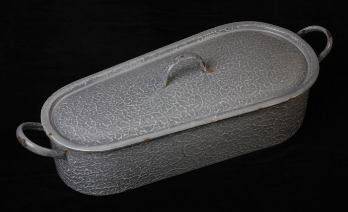 Hazenpan van grijs gewolkt emaille met twee handgrep...