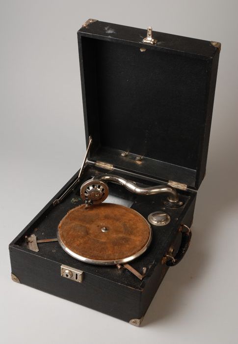 Koffergrammofoon met slinger, merk Parlophone