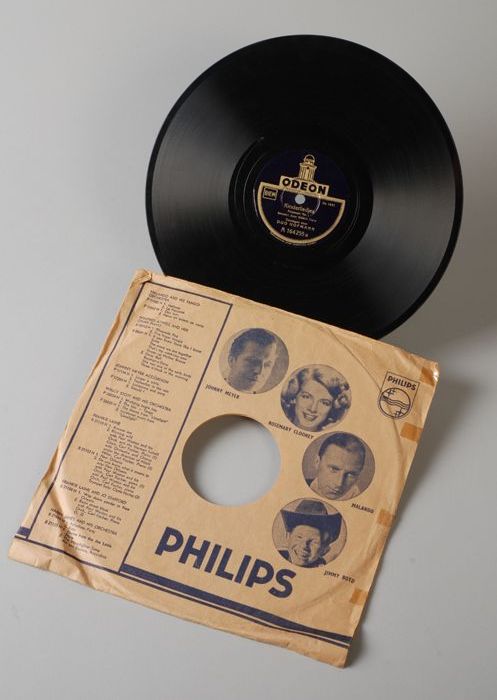 Grammofoonplaat voor 78 toeren in papieren hoes, lab...