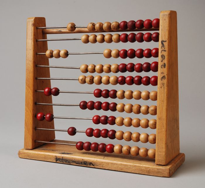 Staand telraam met rode en witte kralen