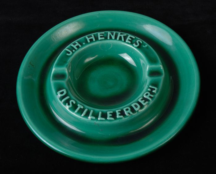 Groene asbak met "Distilleerderij J.H. Henkes"