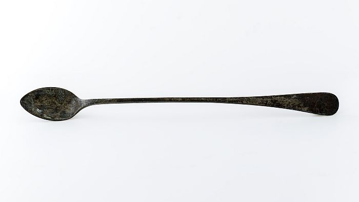 Lepel met ovale bak en lange dunne steel met verbree...