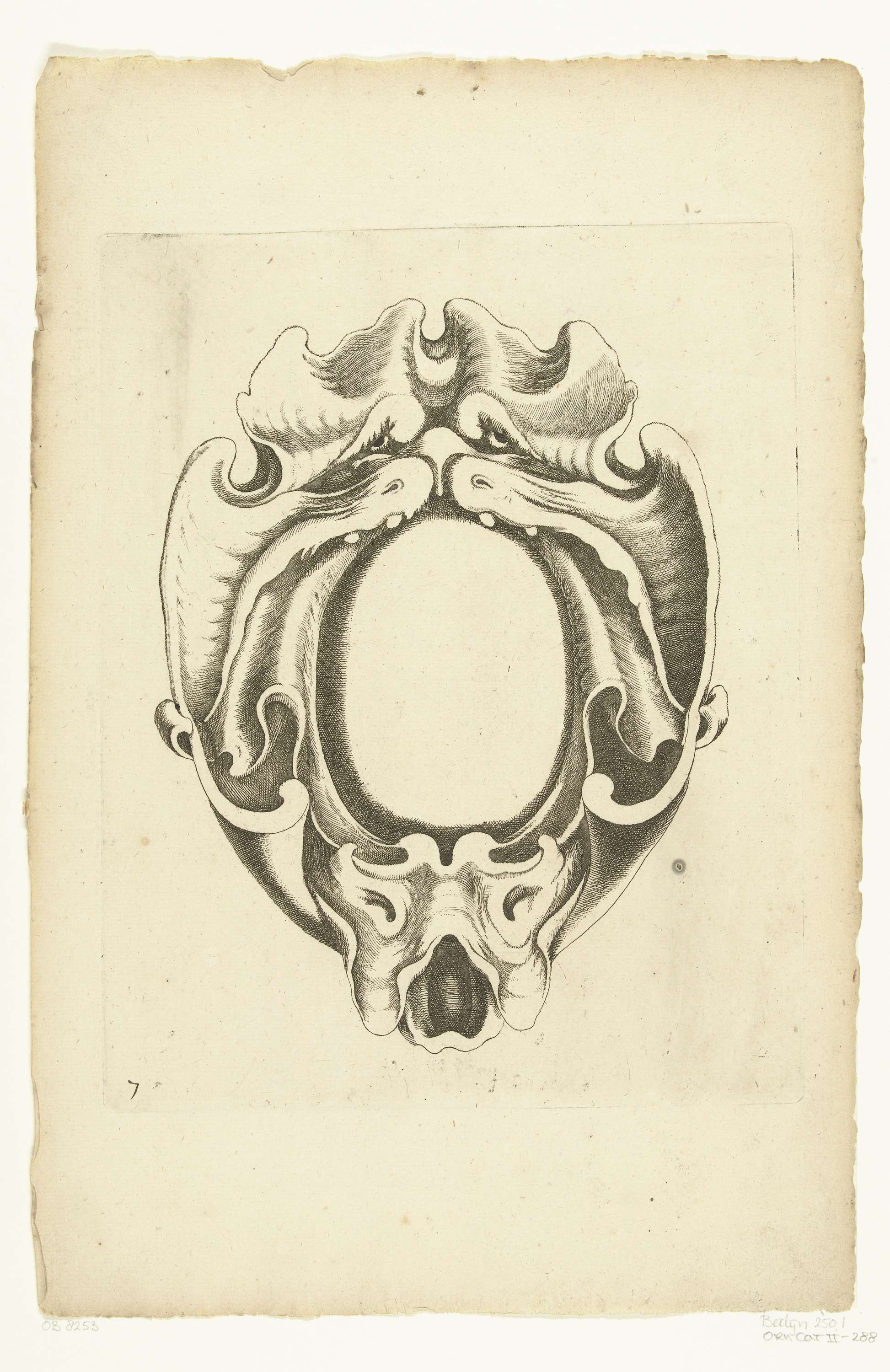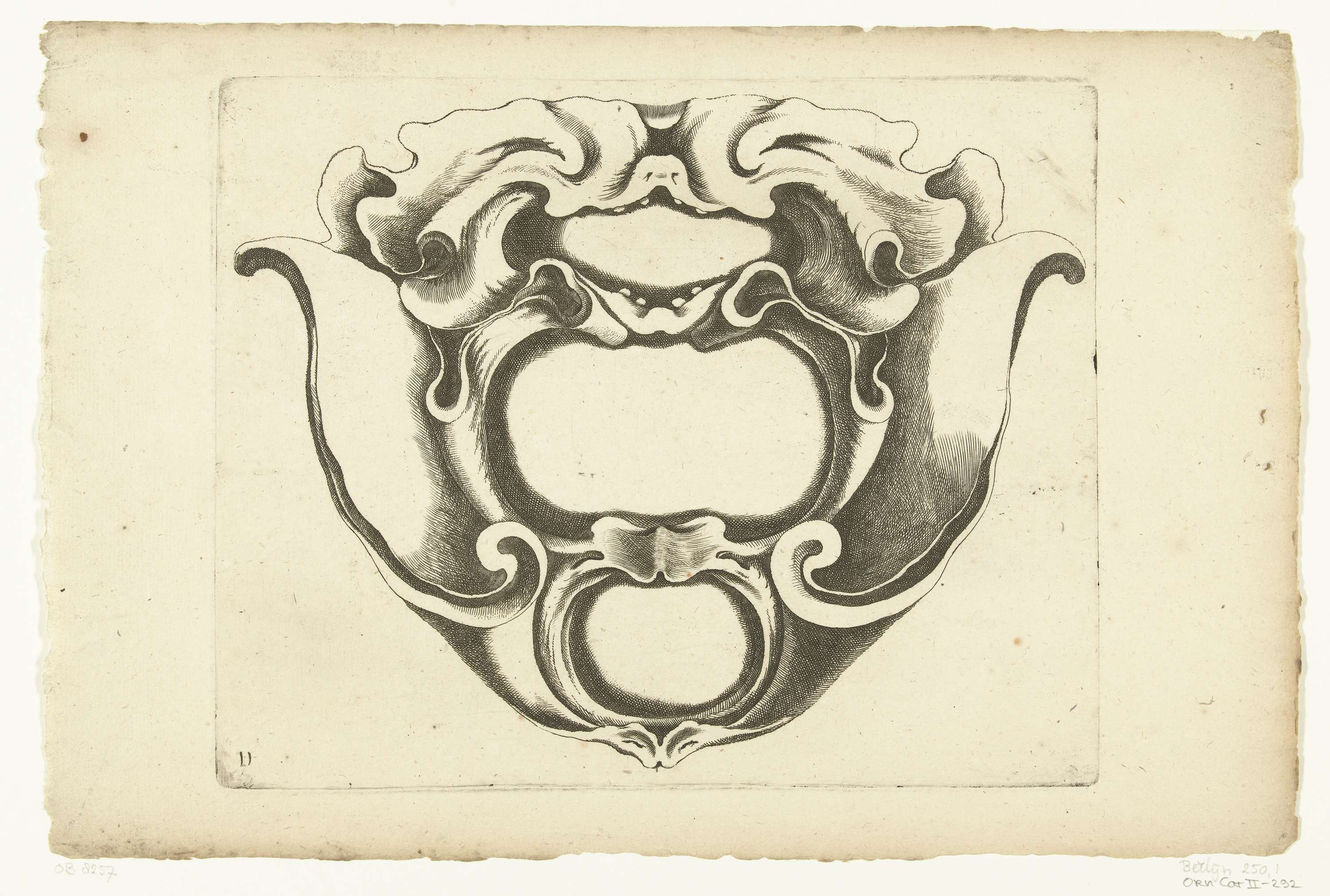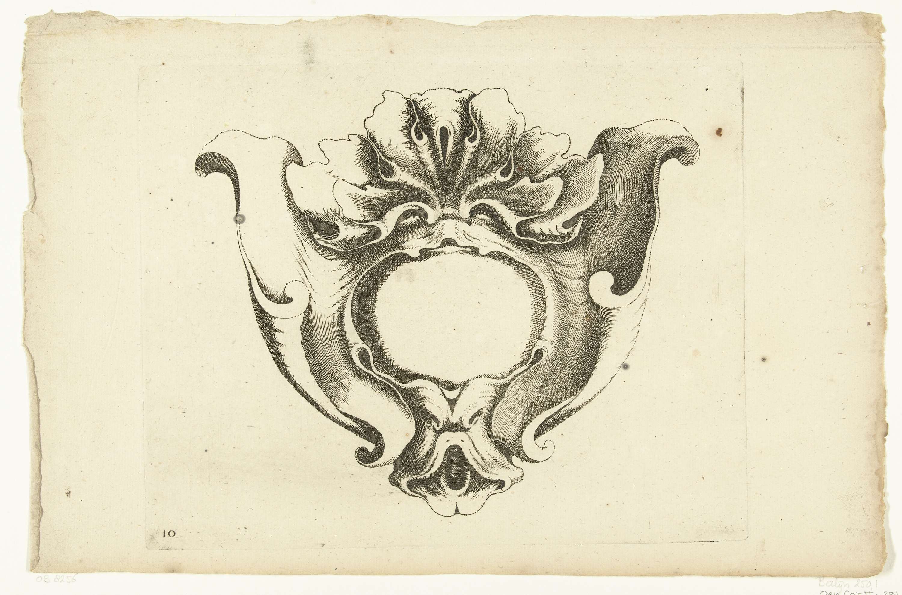 Cartouche met bovenaan en onderaan een masker