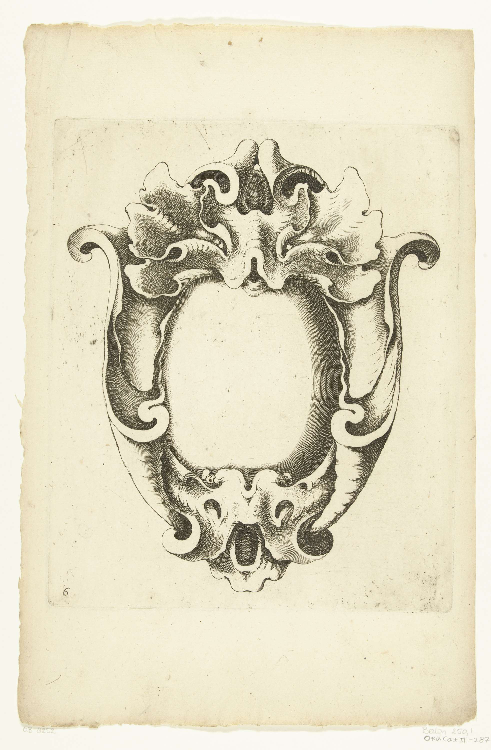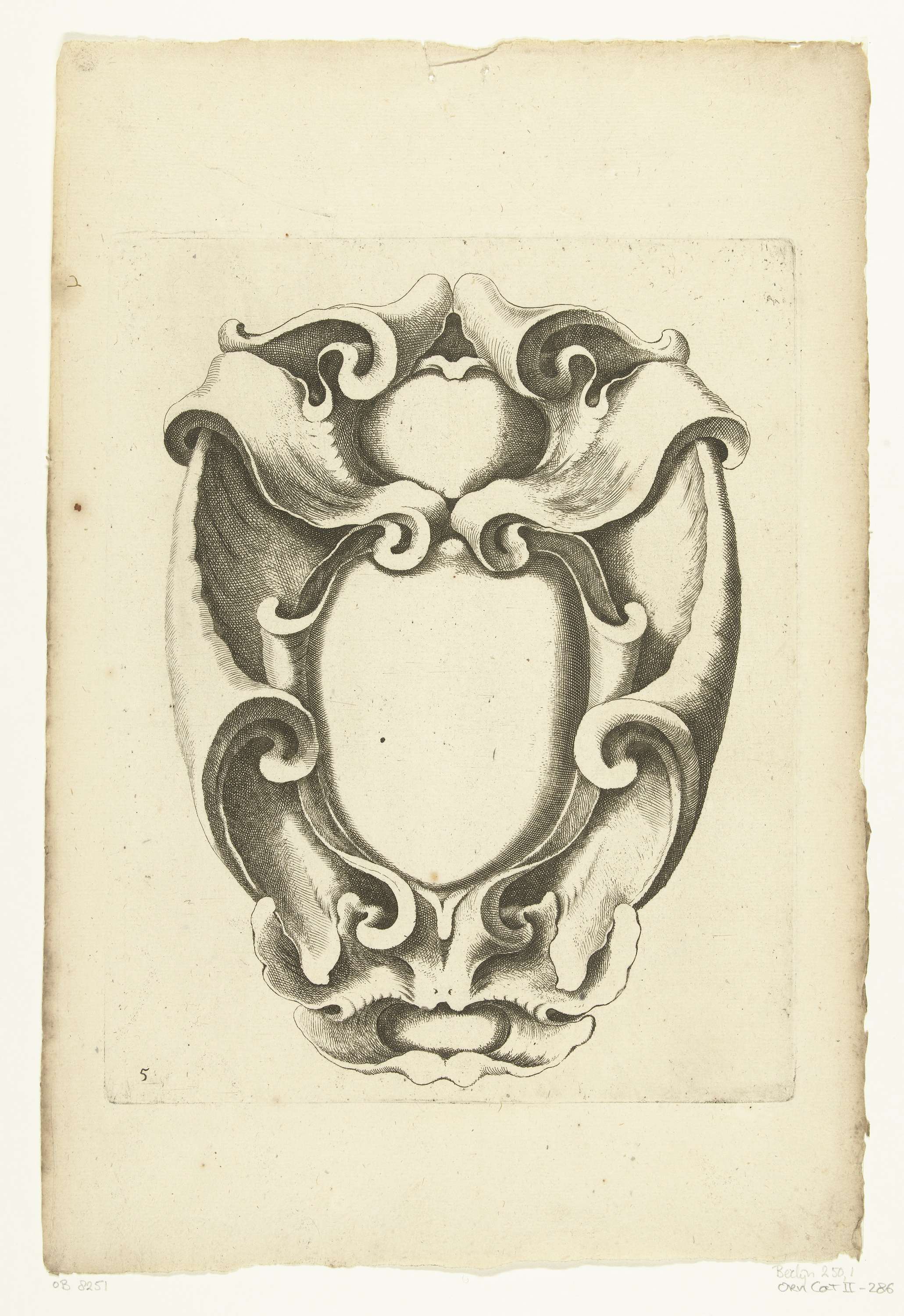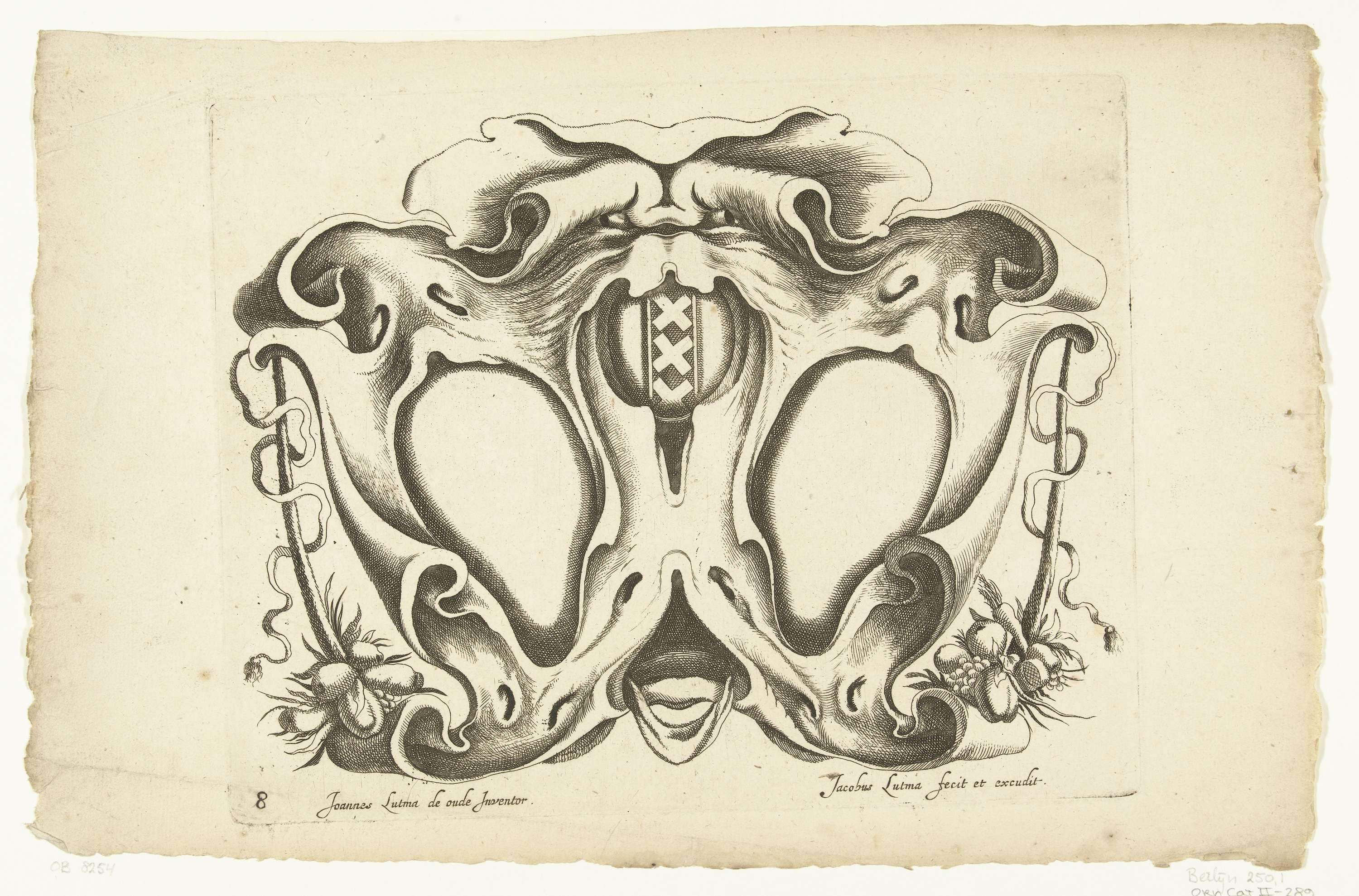 Cartouche met bovenaan en onderaan een masker