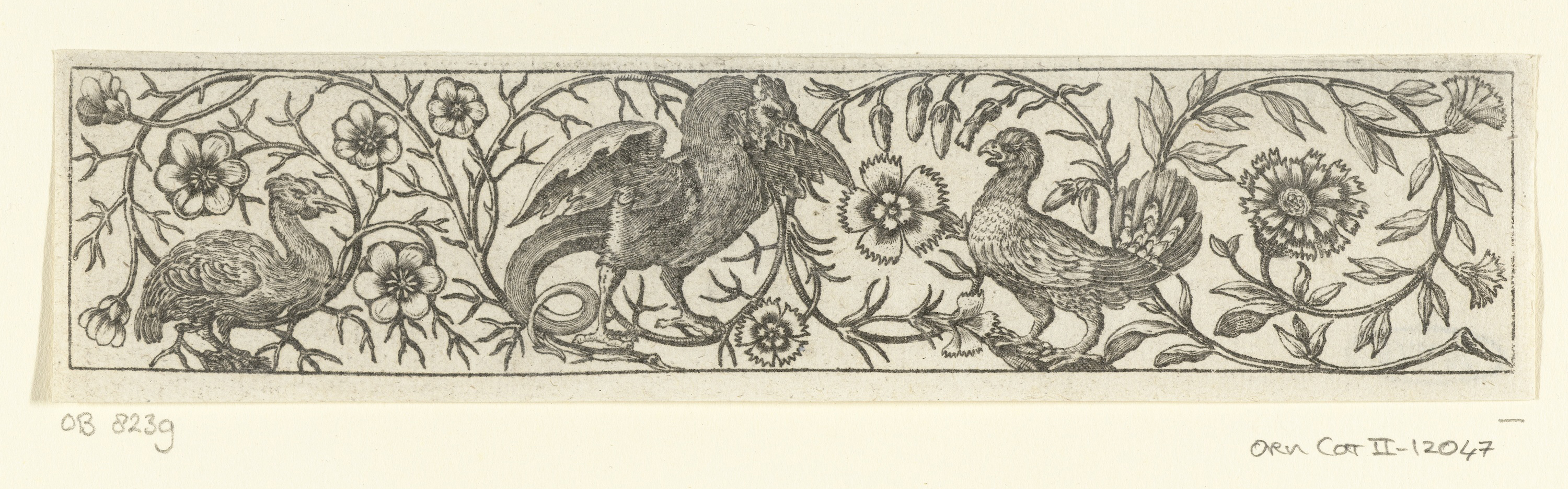 Fries met bloemenranken en drie vogels