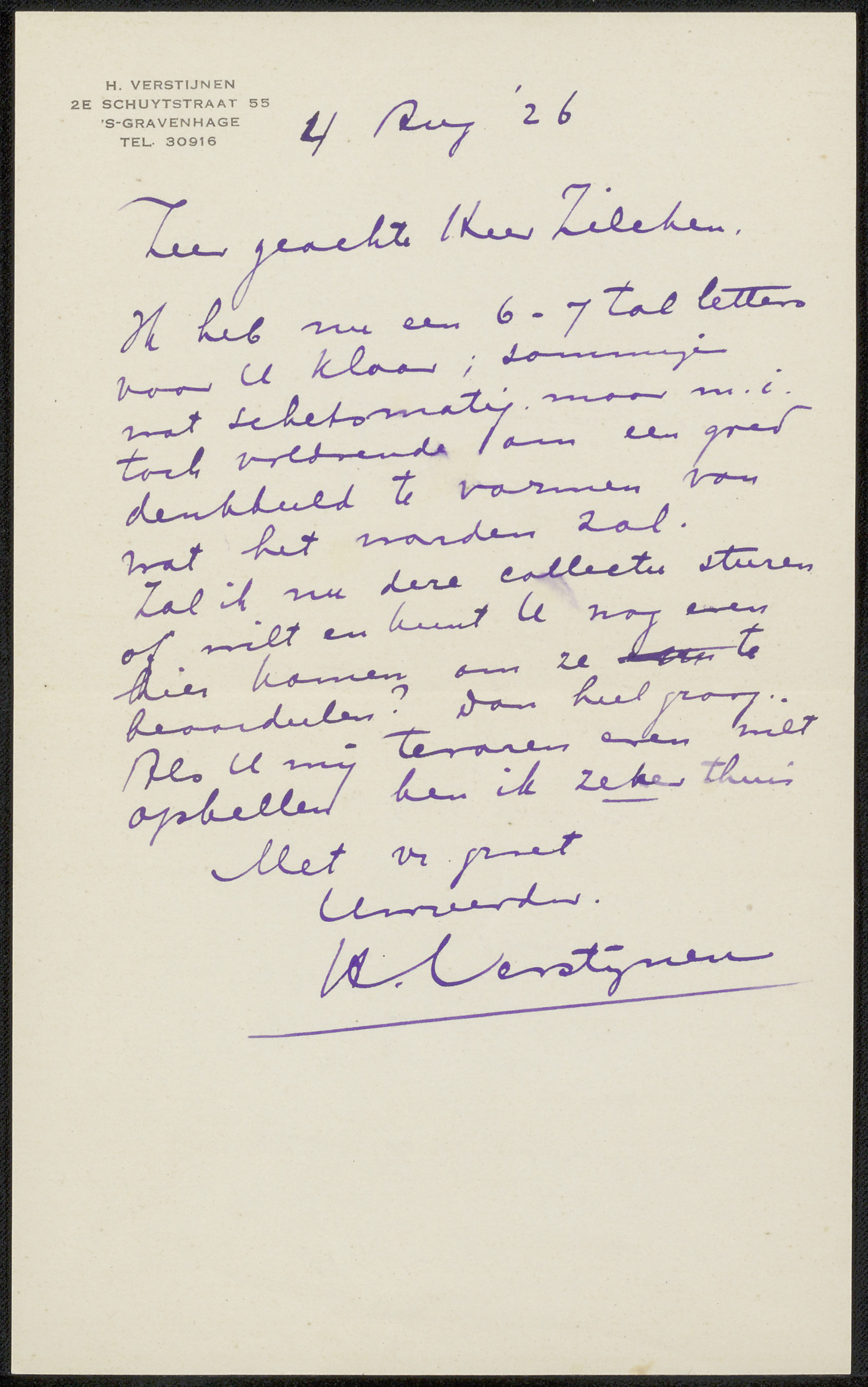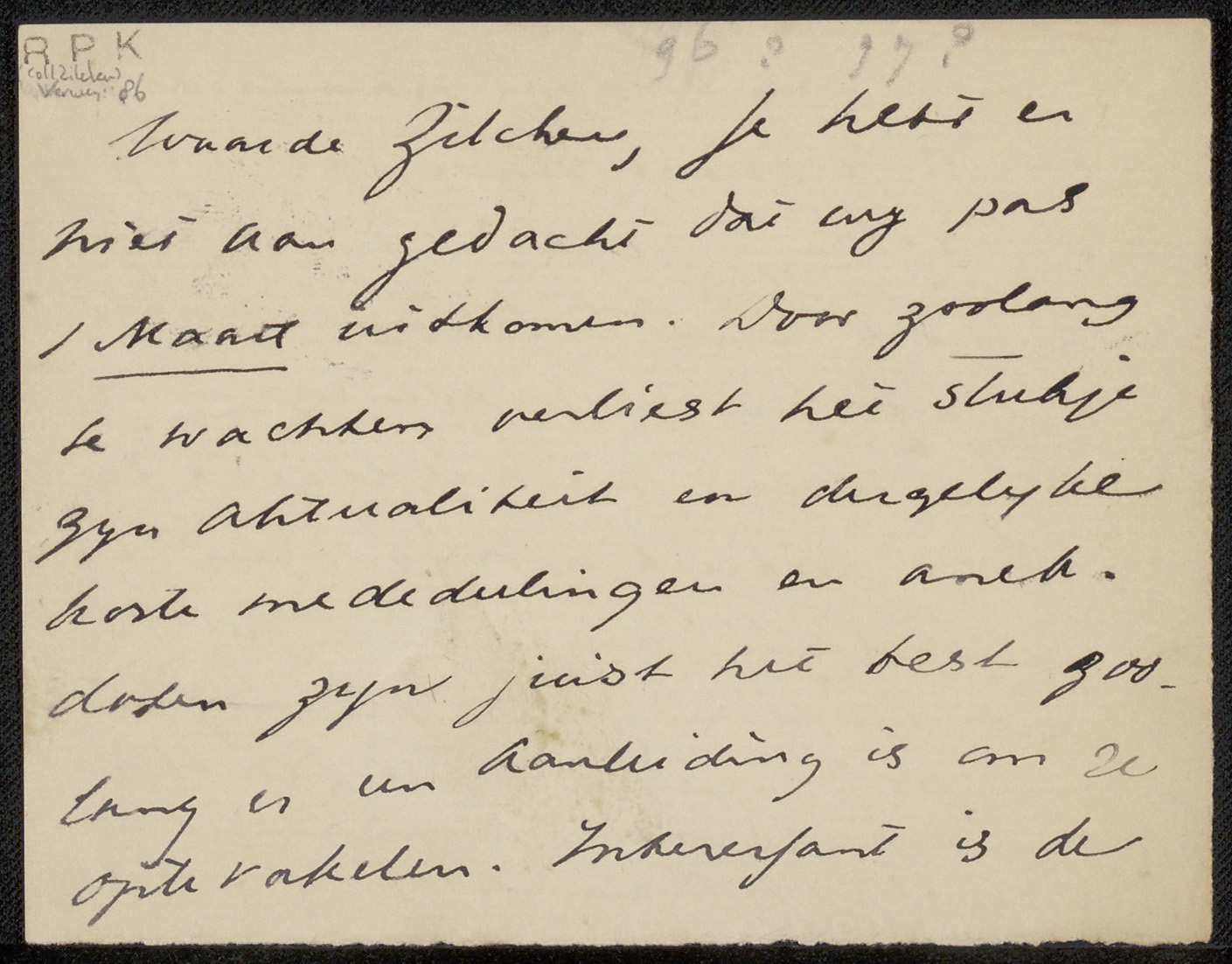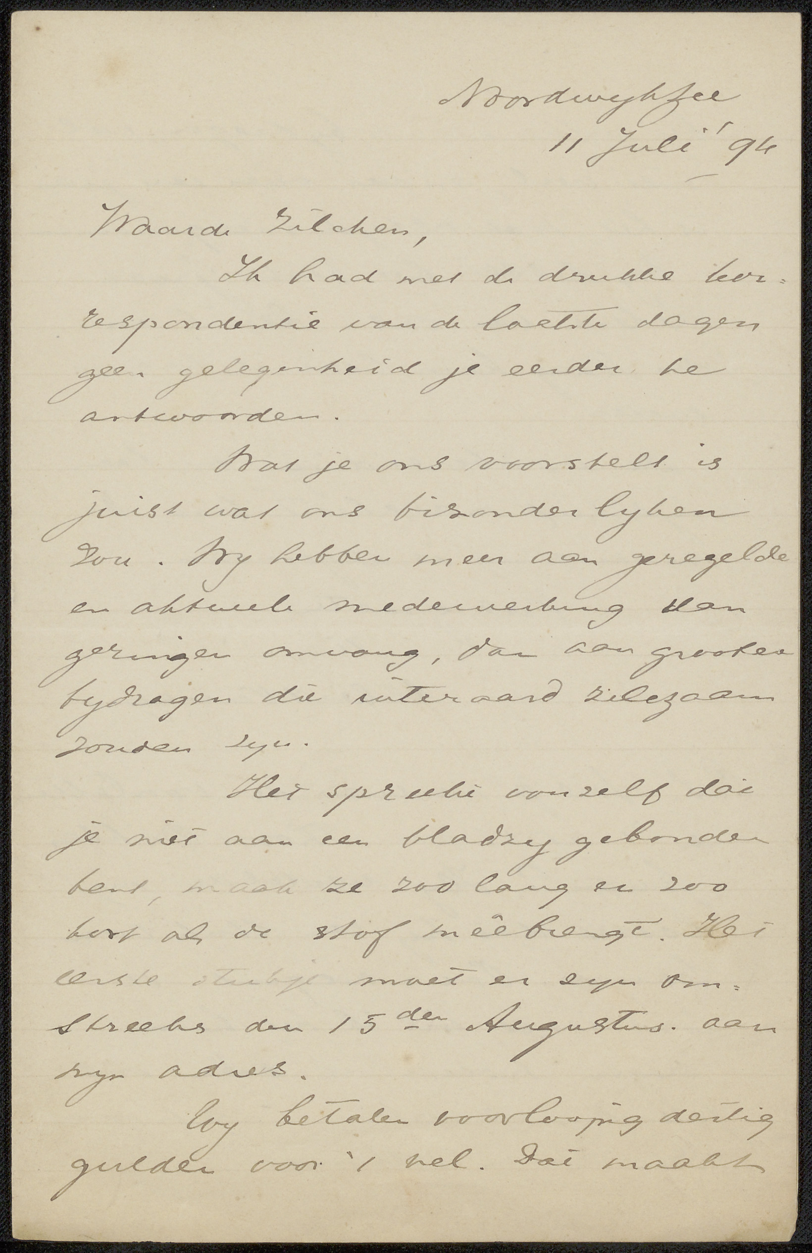 Brief aan Philip Zilcken
