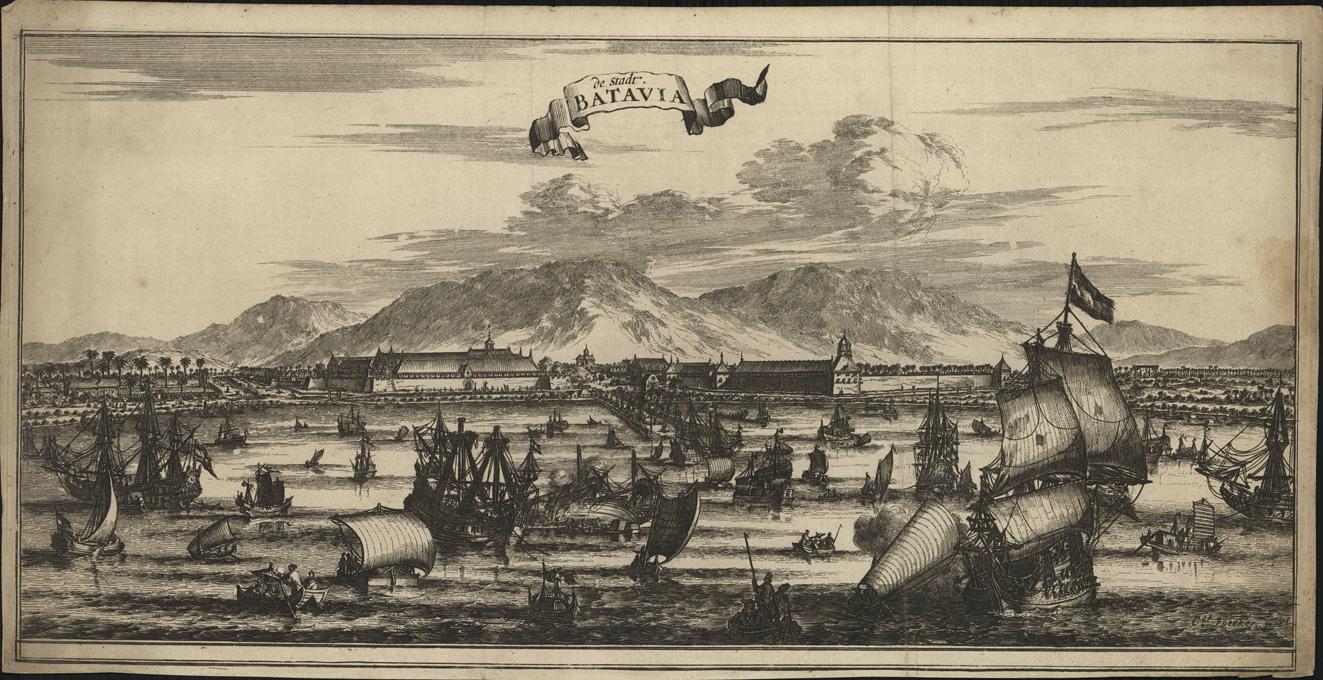 Gezigt van de Groote Hollandsche Kerk op Batavia, va...