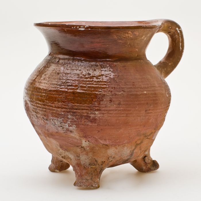 Aardewerk kookpot, kookkan, met één worstoor, op dri...