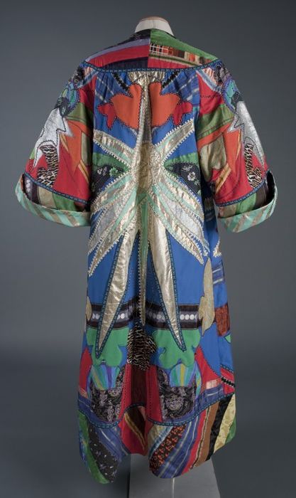 Voetlange wijde huisjas, veelkleurige applicaties en...
