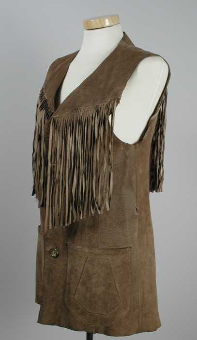 Mouwloos gilet van bruin suède met lange franjes voo...