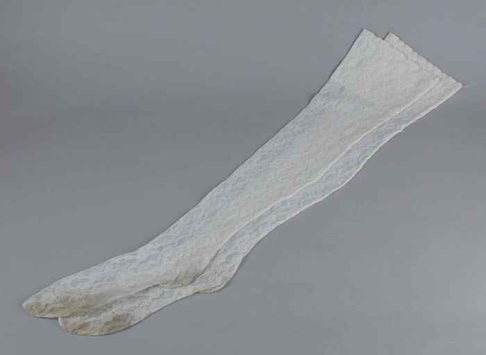 Paar lange witte nylonkousen met kantmotief