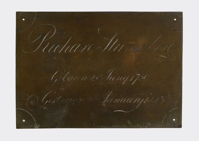 Rechthoekige koperen grafplaat of kistplaat "Richard...