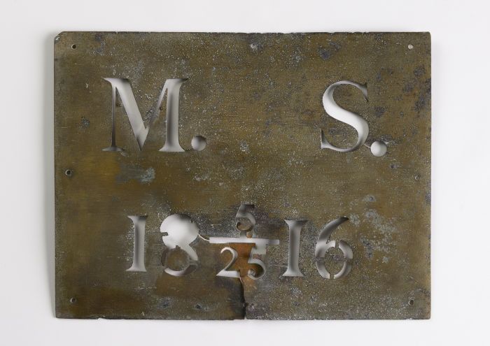 Rechthoekige koperen grafplaat of kistplaat "MS", af...