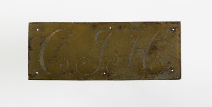 Rechthoekige koperen grafplaat of kistplaat "C.J.H."...