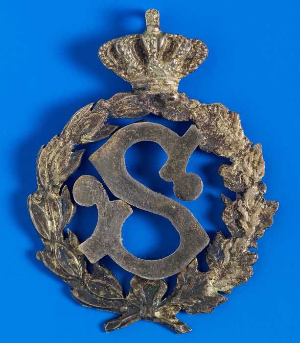 Zilveren boordenspeld eindigend in twee gegraveerde ...