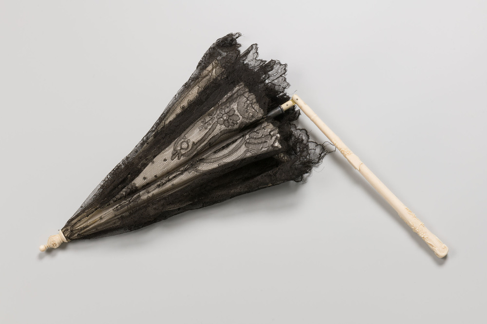 Ivoren parasol met zwart tule