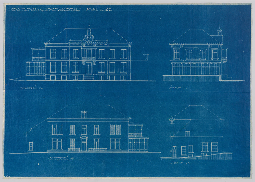Blauwdruk van het gevelschema van landgoed Mariëndaal