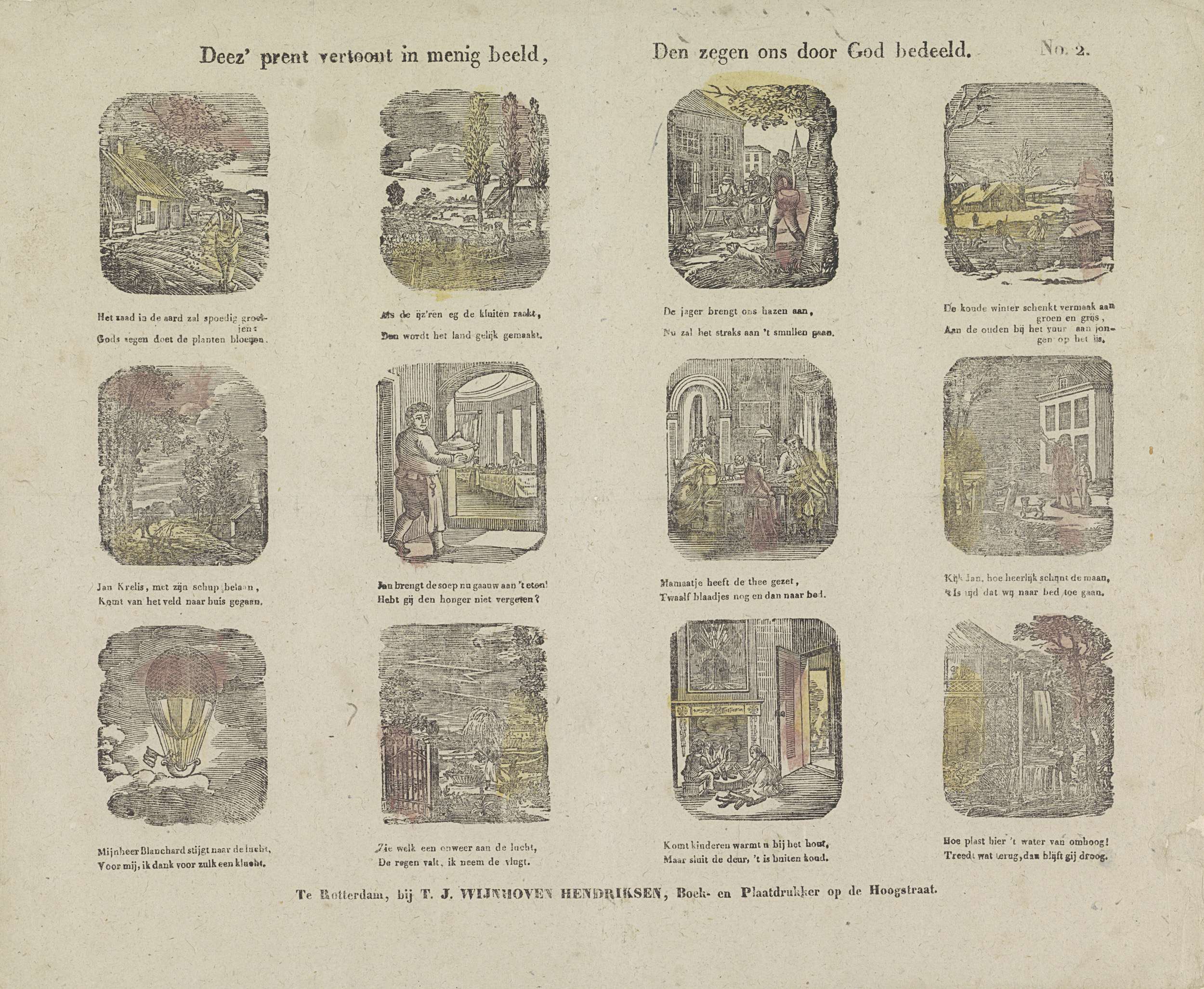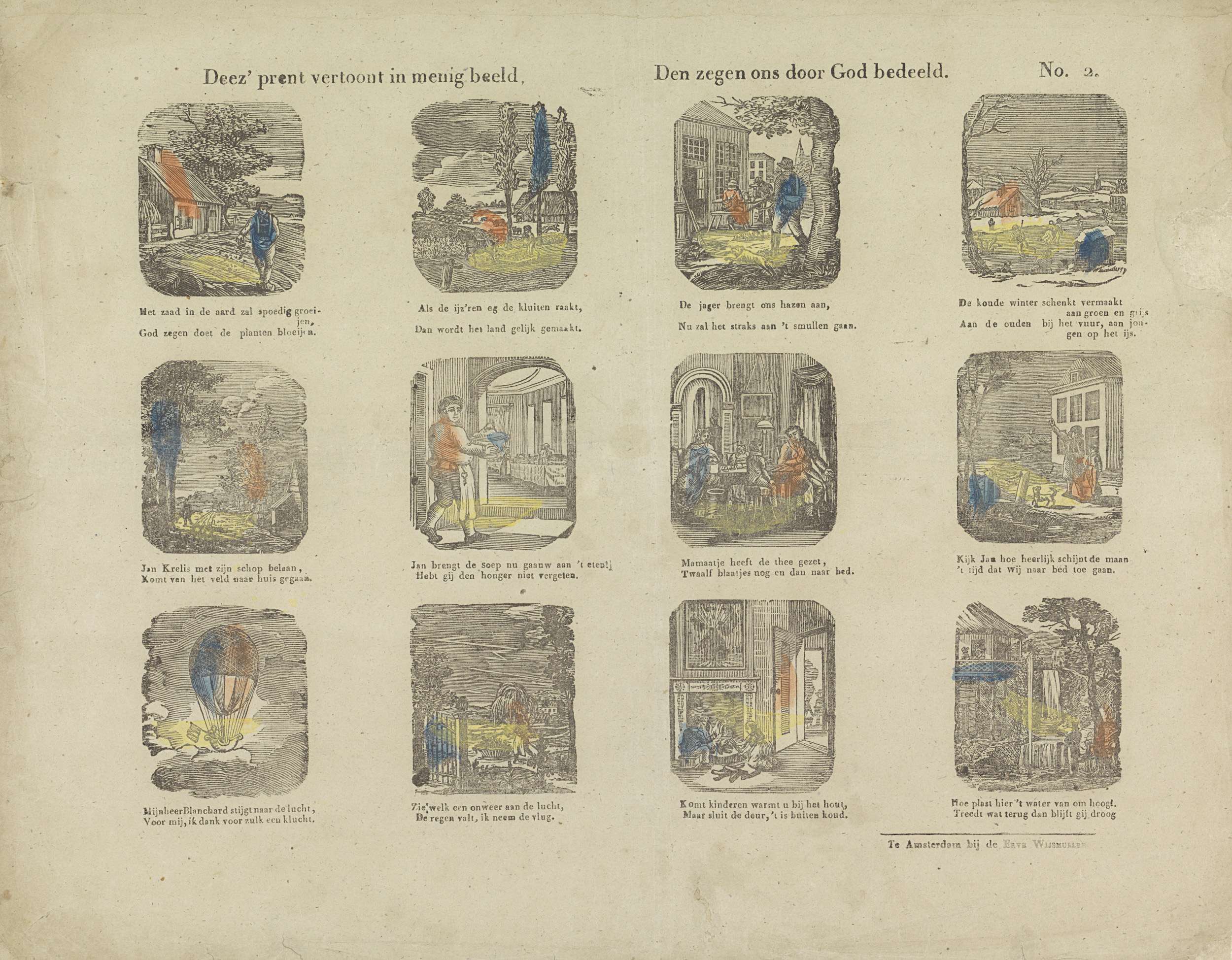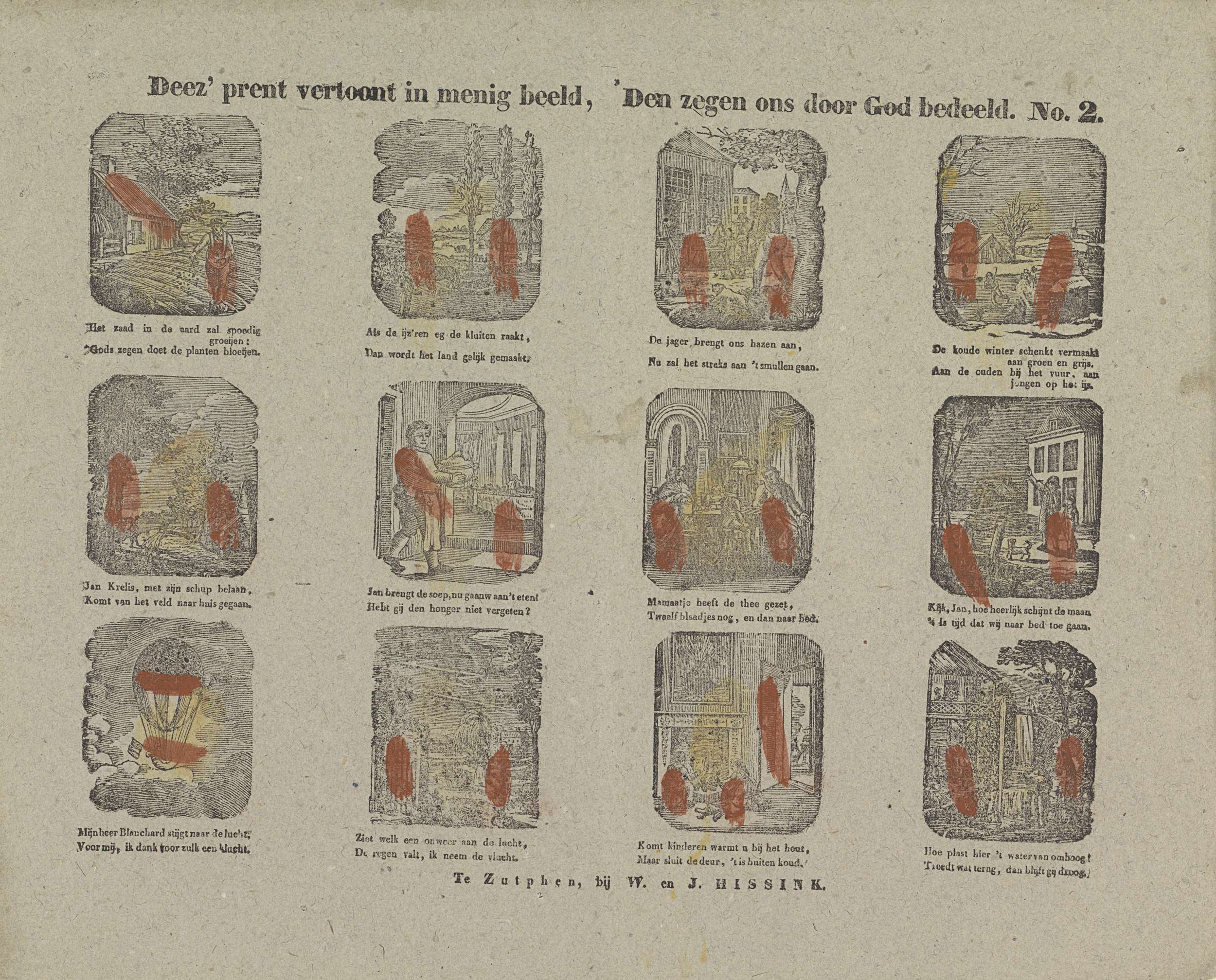Deez' prent vertoont in menig beeld, / Den zegen ons...