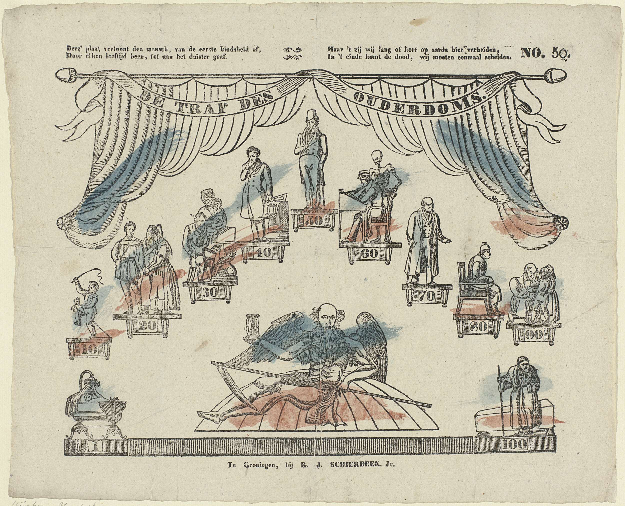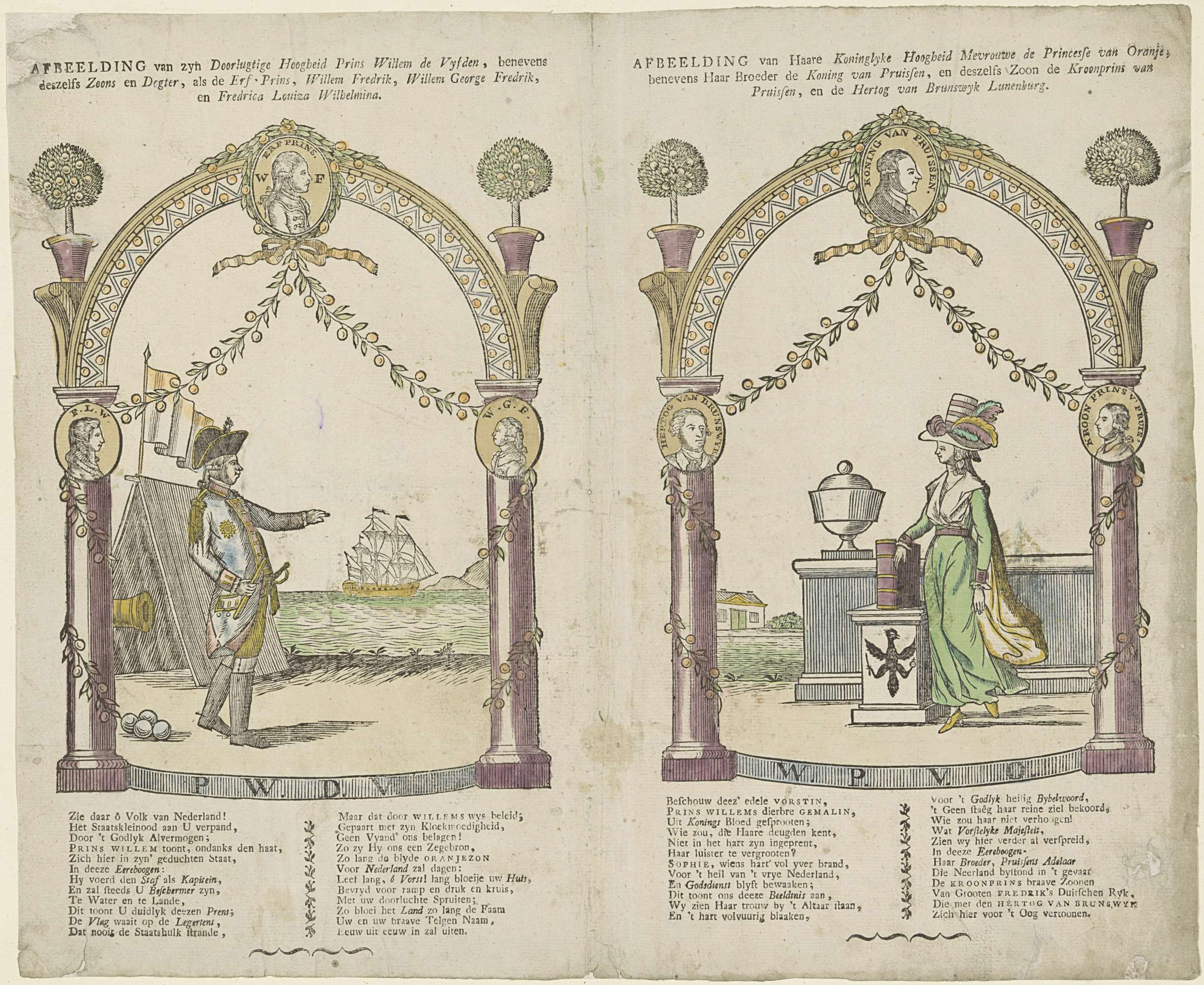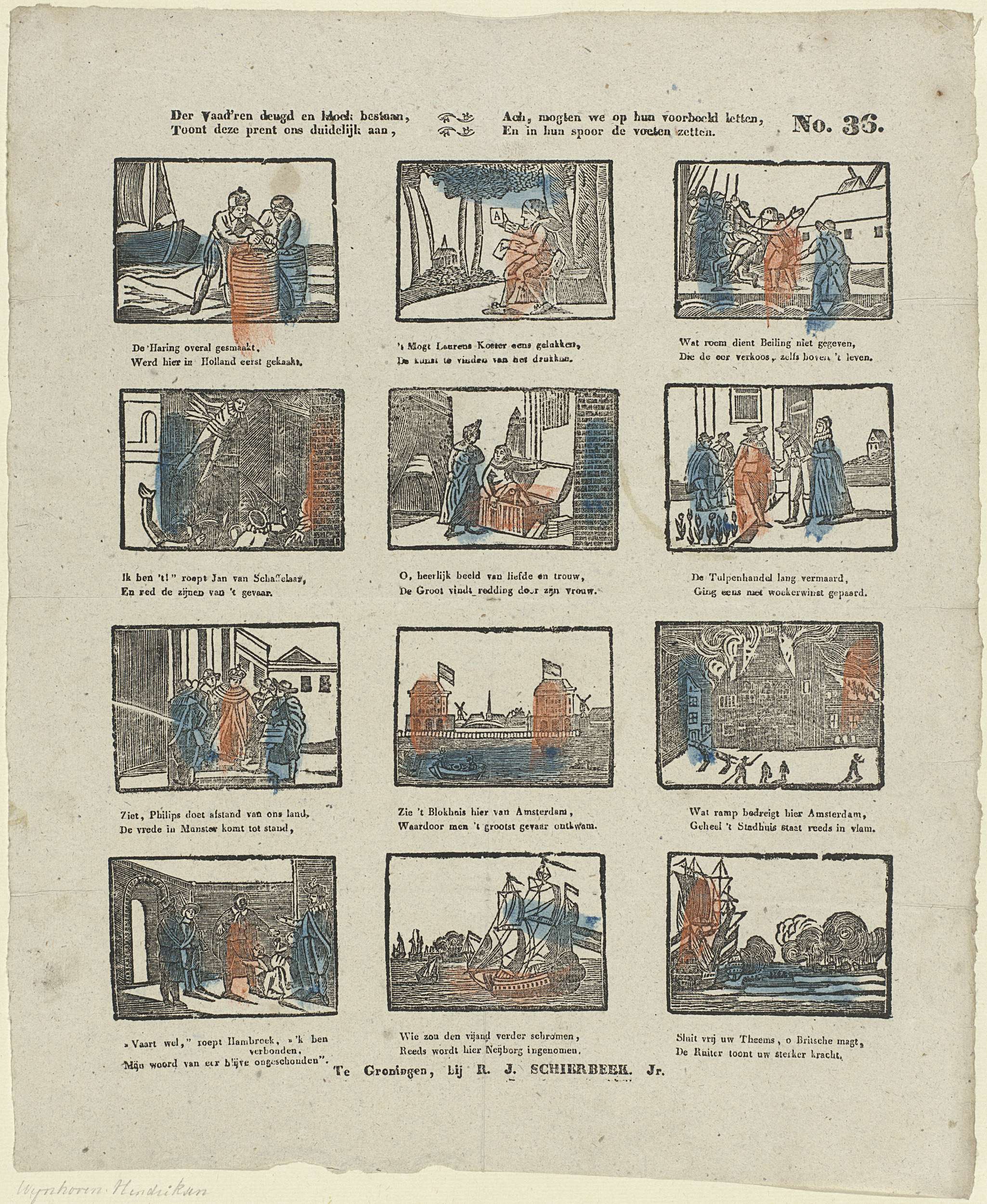 Deez' prent vertoont in menig beeld, / Den zegen ons...