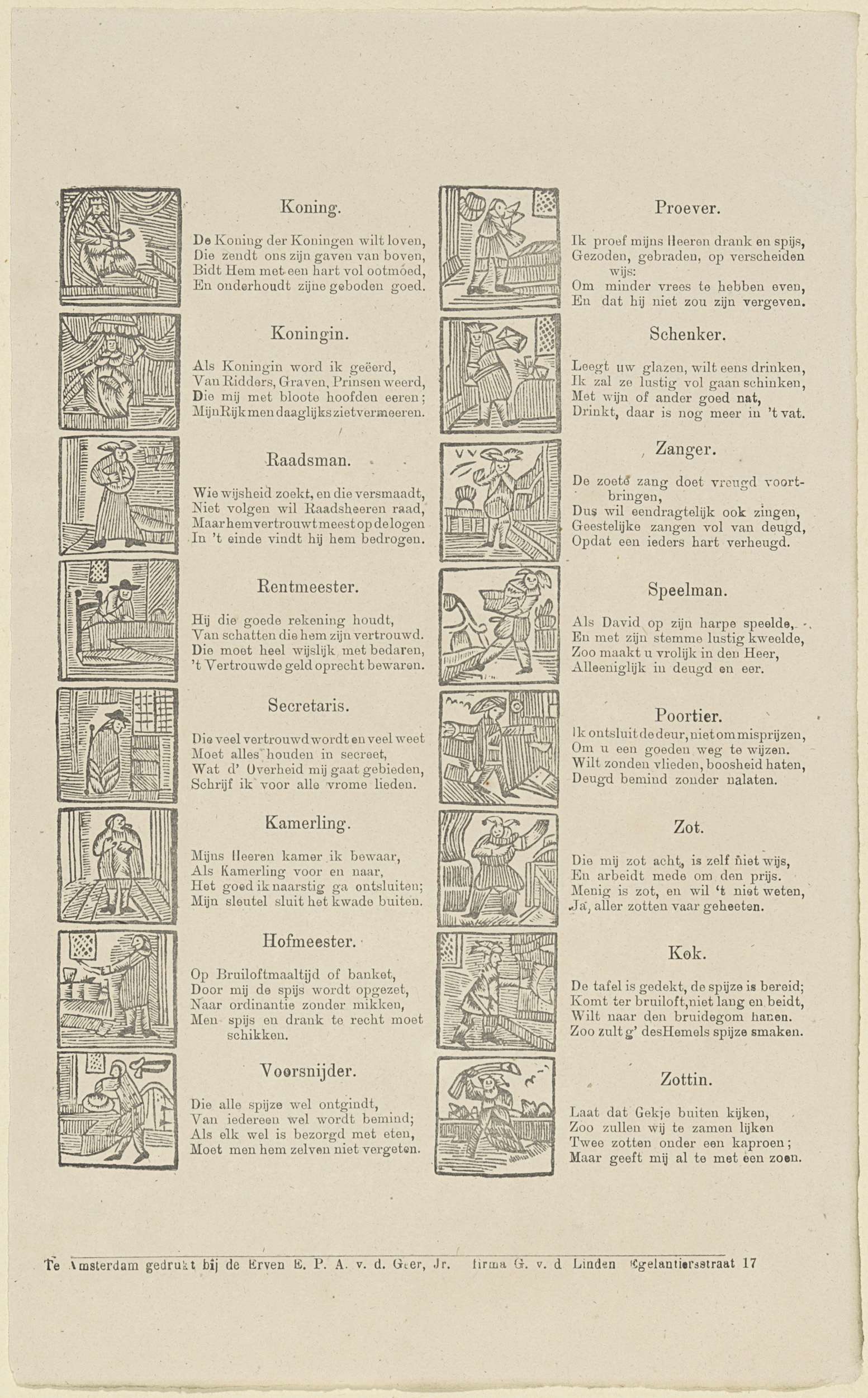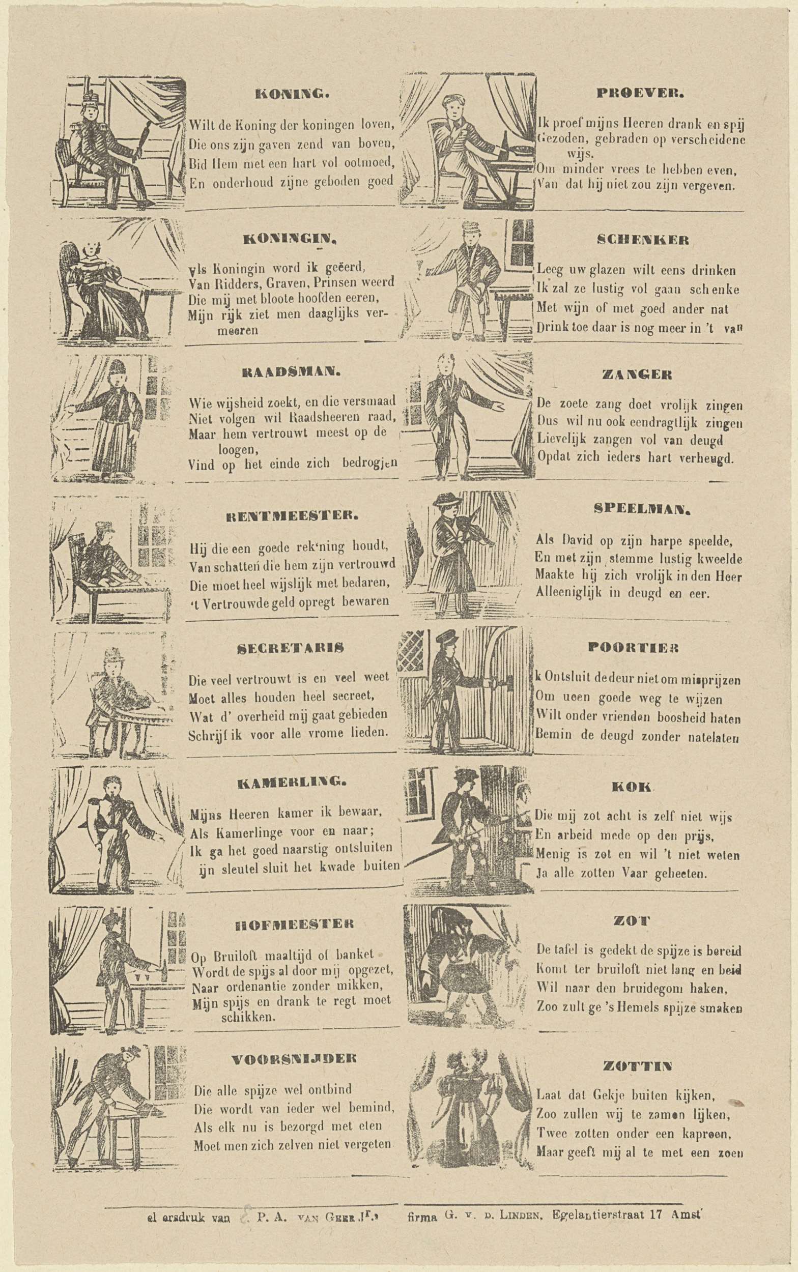 Bedelaar. / Krygsman. / Boer. / Edelman