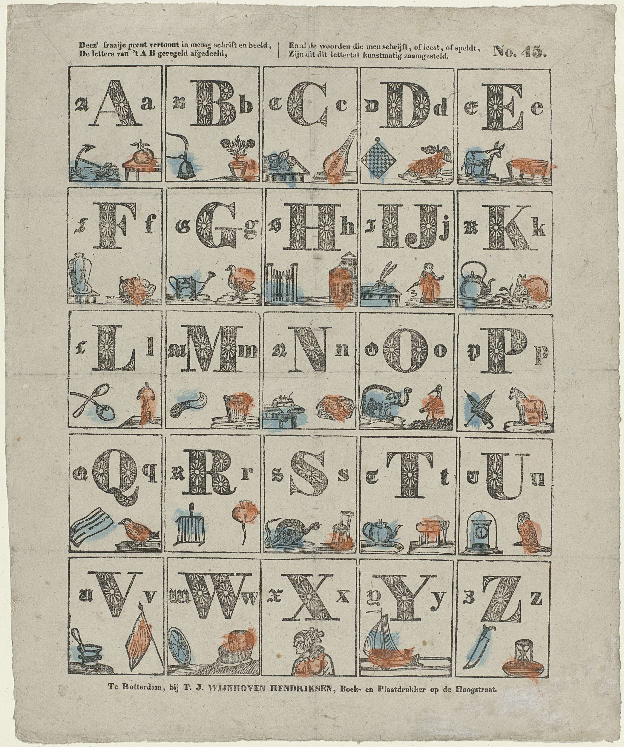 Ziet, elke letter van 't A B, / Brengt hier een aard...