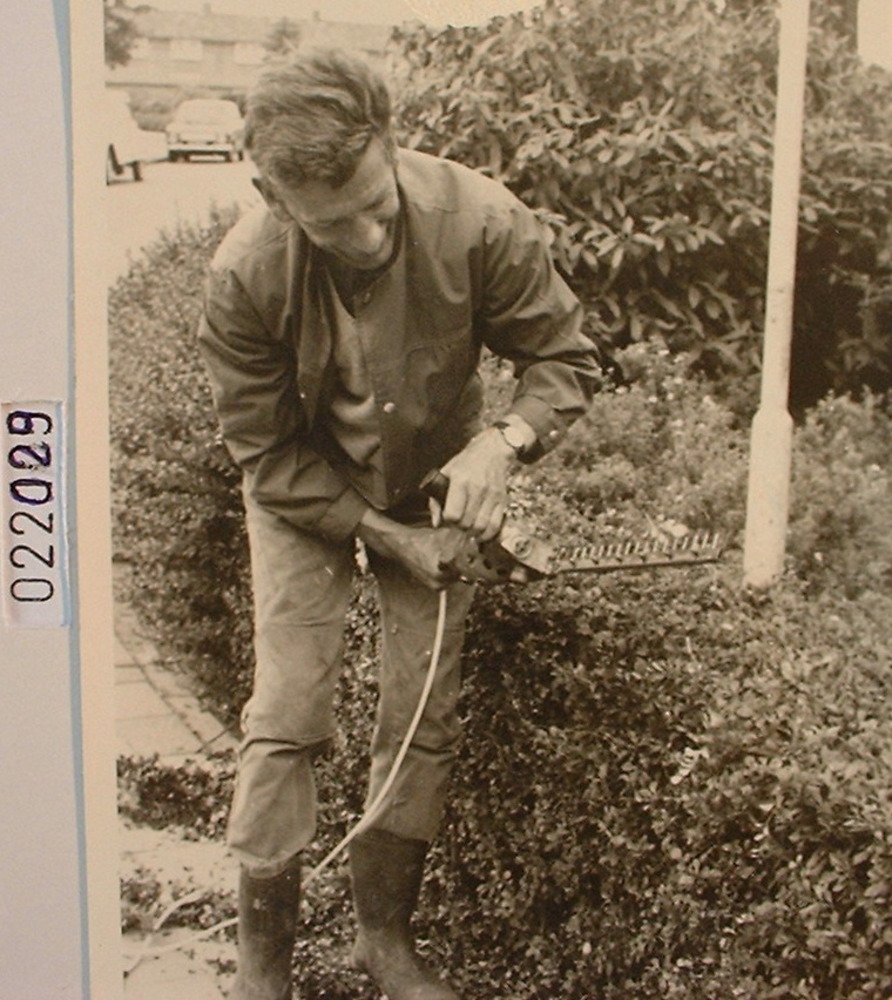 De heer Johan van Aalten (tuinder) op weg naar de ve...