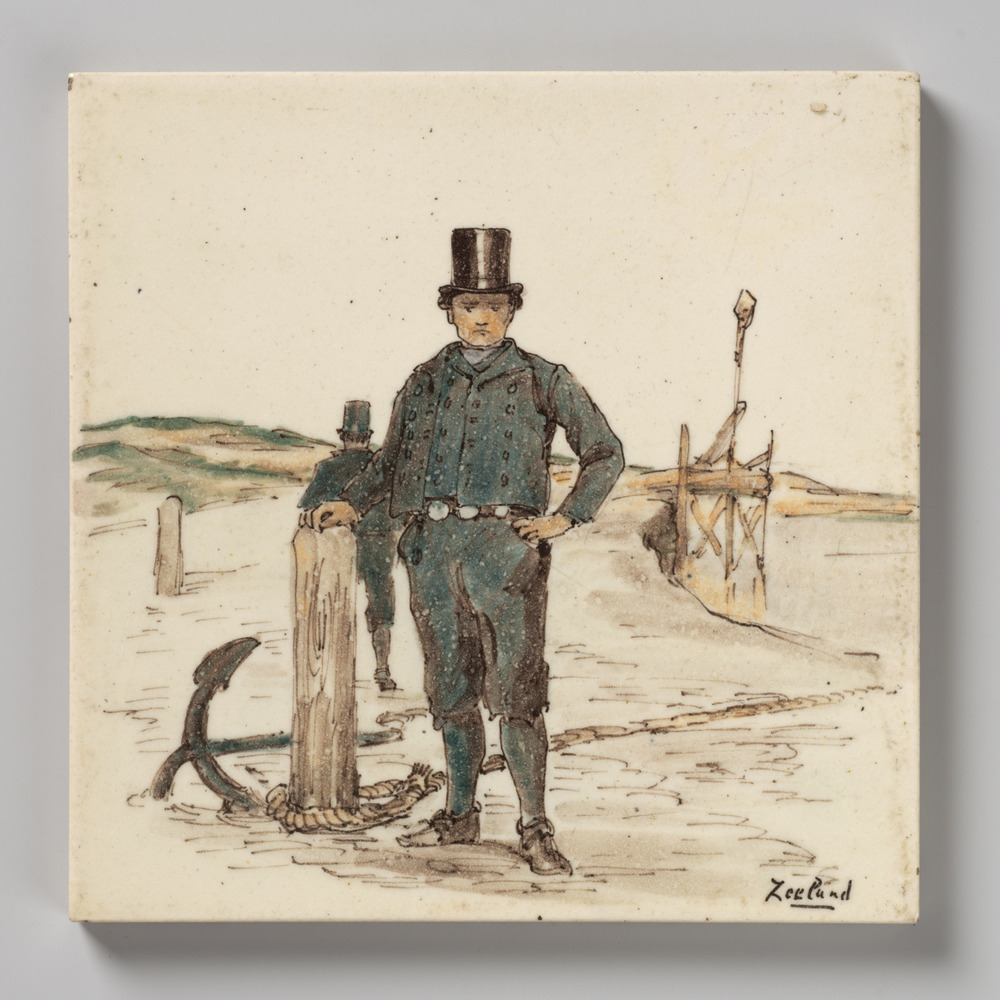 tegel van aardewerk met tinglazuur, voorstellende: m...