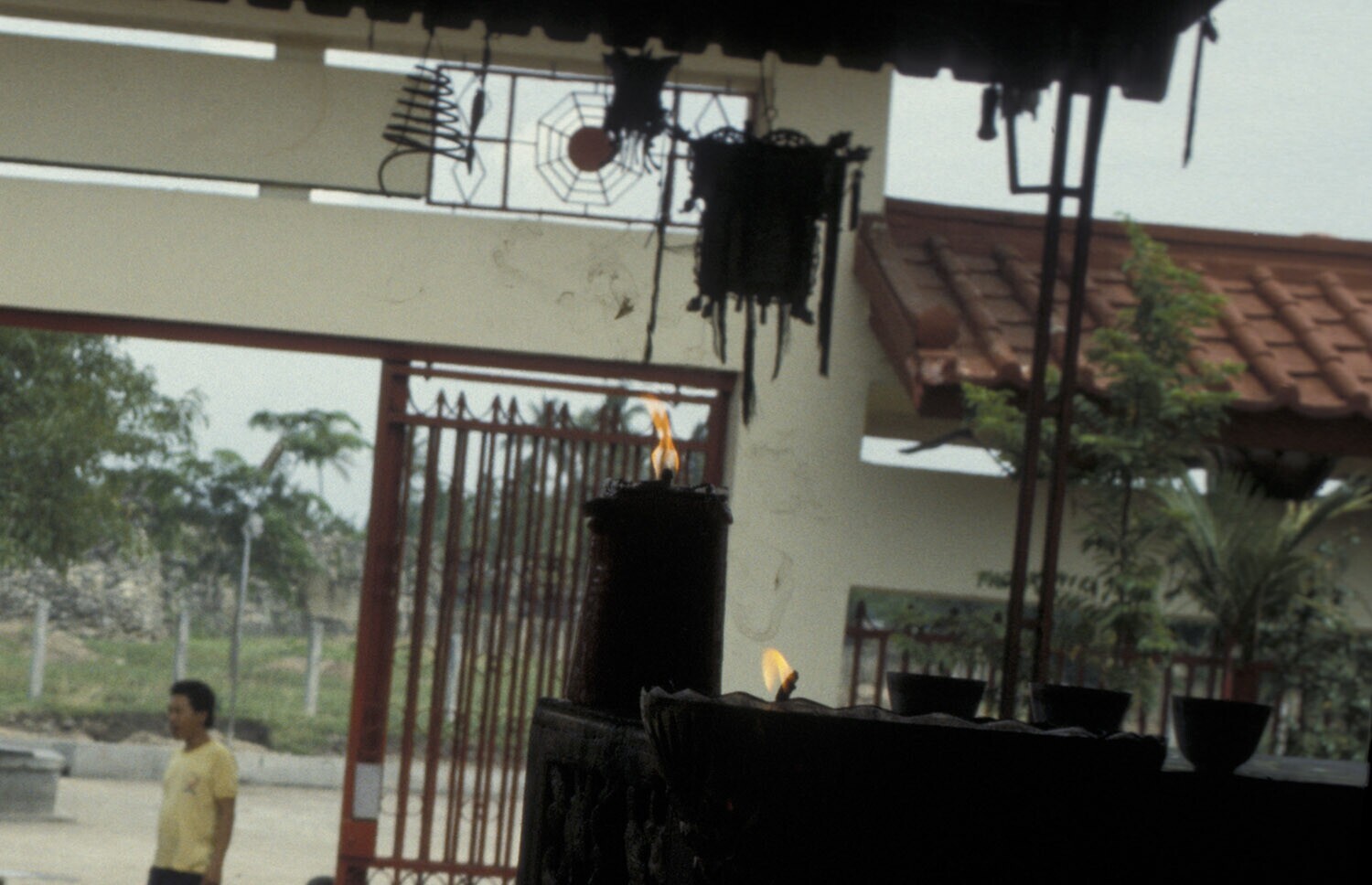 'Sumatra, Medan Interieur chinese tempel; branden va...