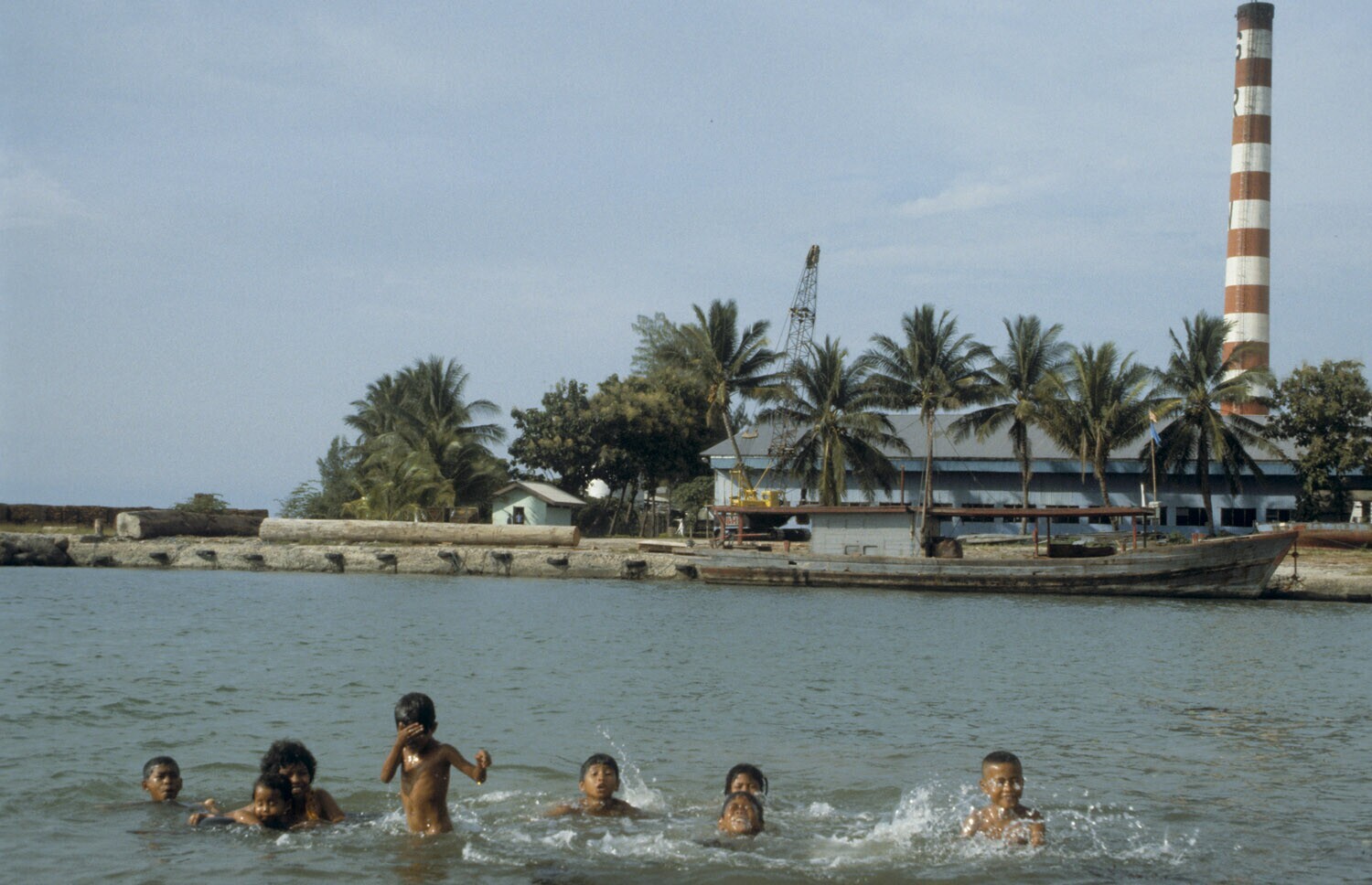 'West Java, Merak Haven van Merak; zwemmende jongetj...