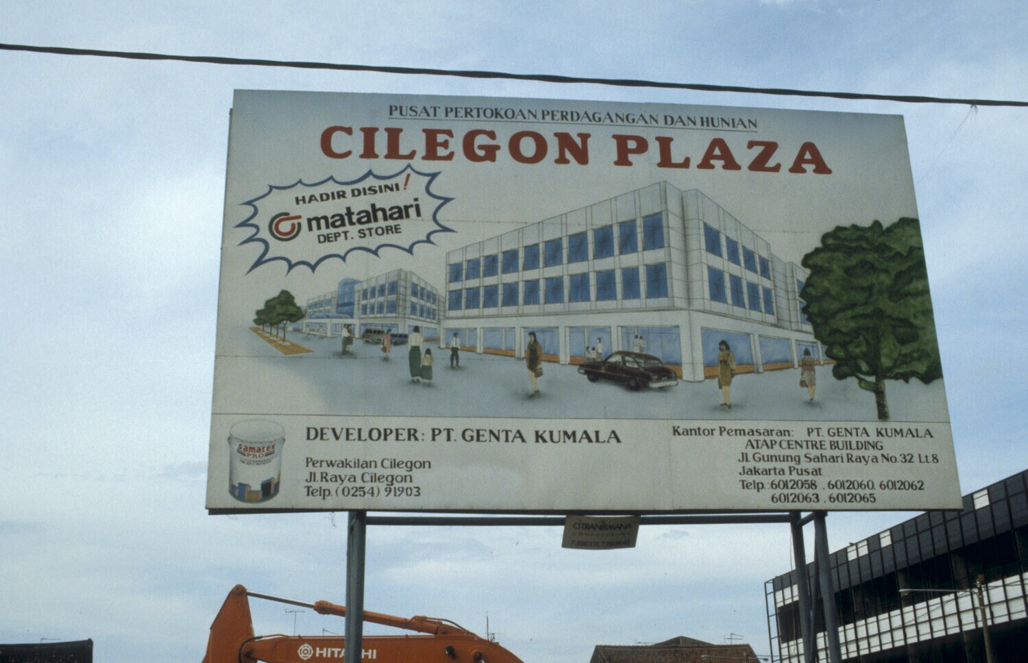 West Java, tussen Jakarta en Merak. Reclamebord met ...