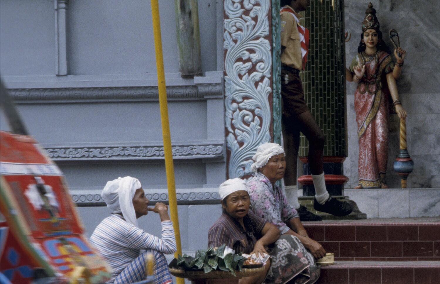 'Sumatra, Medan Hindutempel aan de jl. Arifin; vrouw...