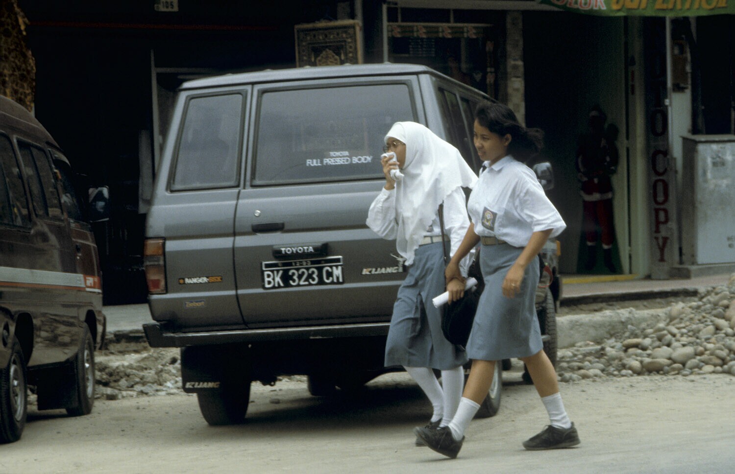 Sumatra, Medan Twee meisjes van de middelbare school...