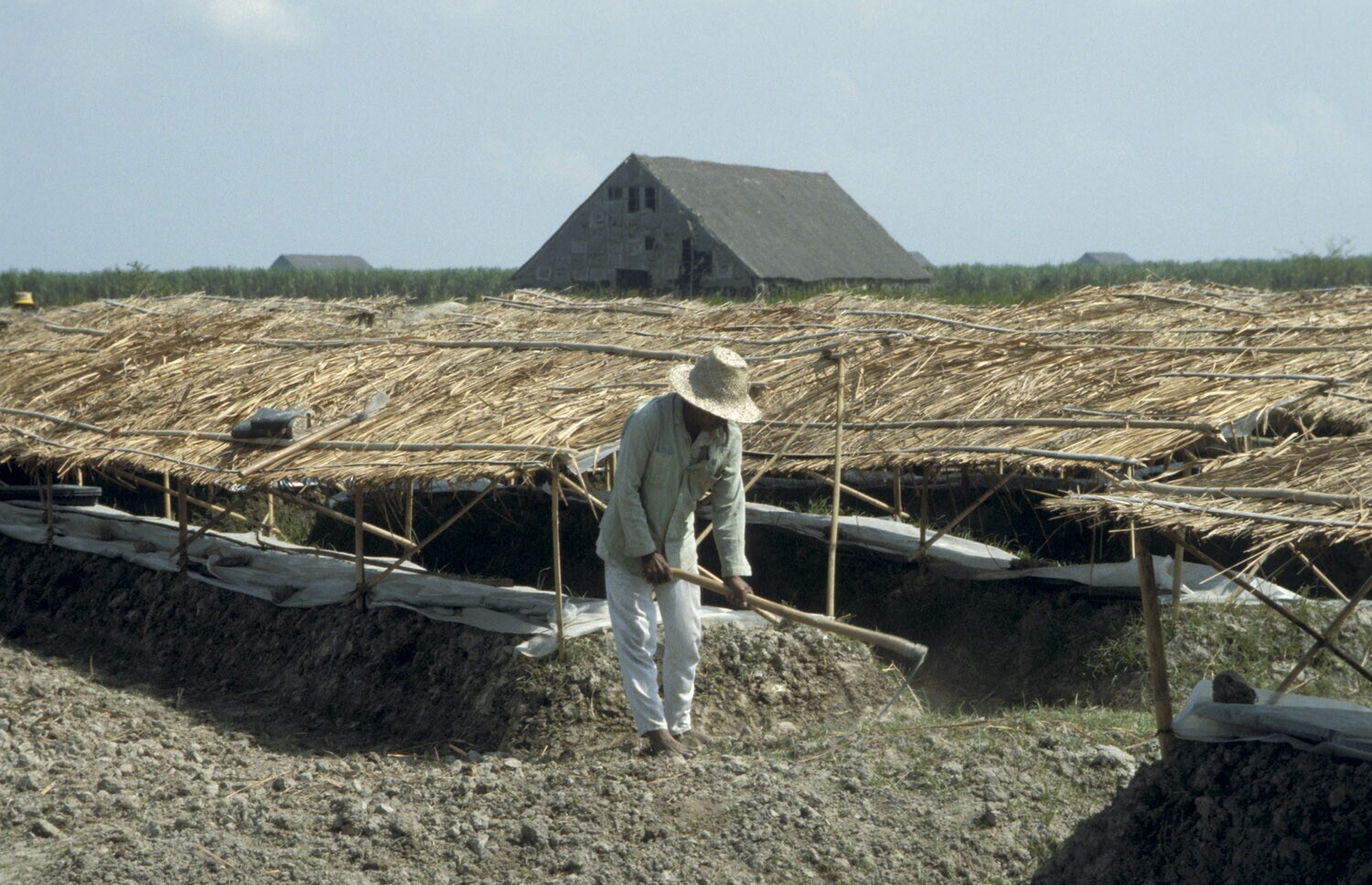 Kweekbedden en tabaksschuren op een plantage in de o...