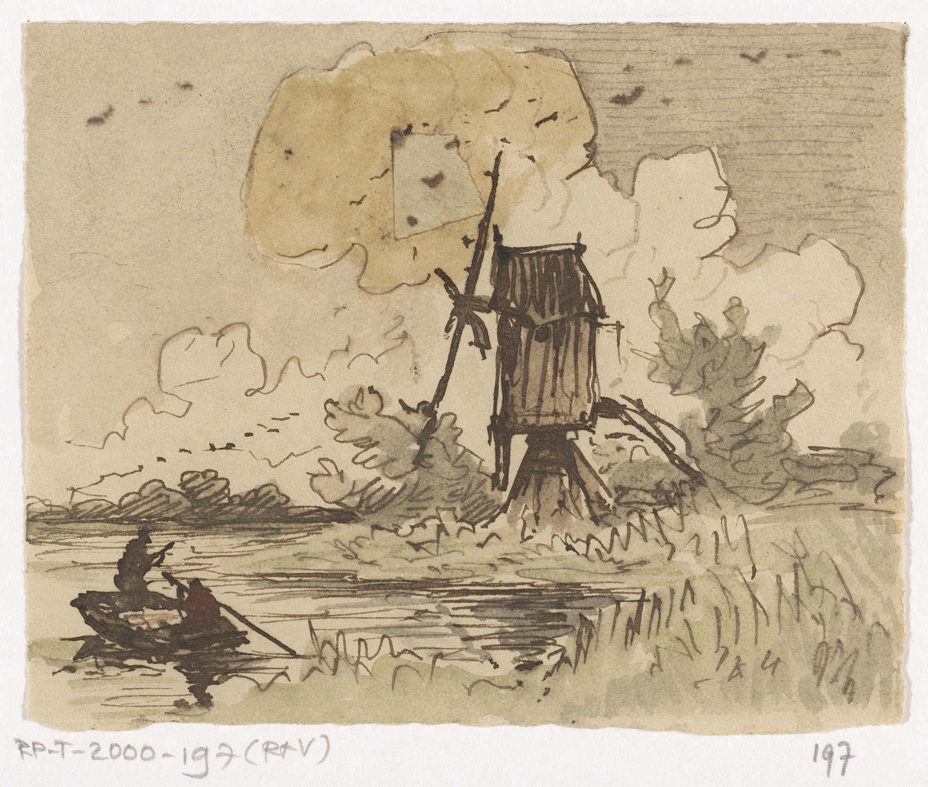 Rivierlandschap met molen