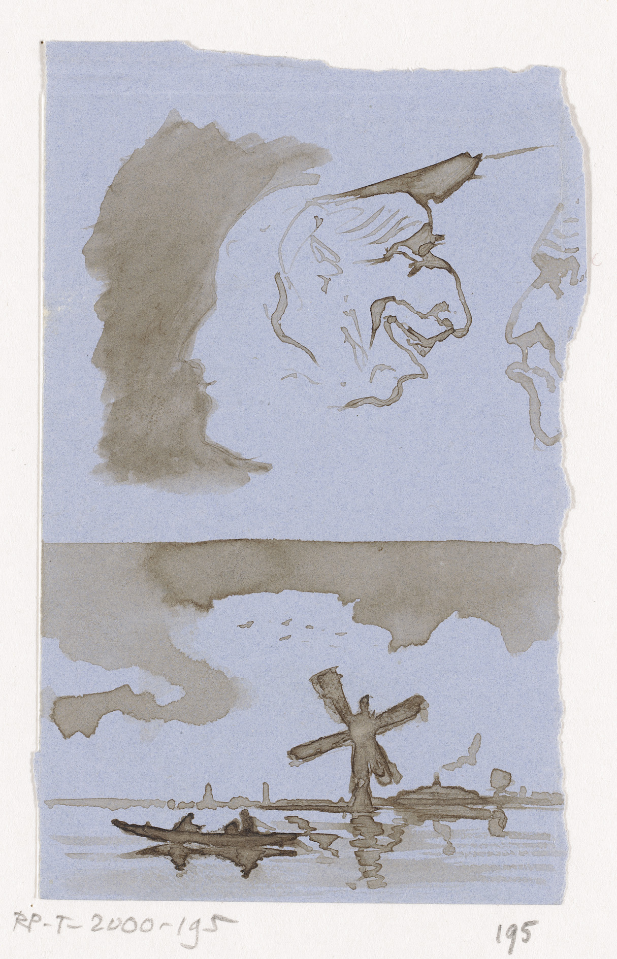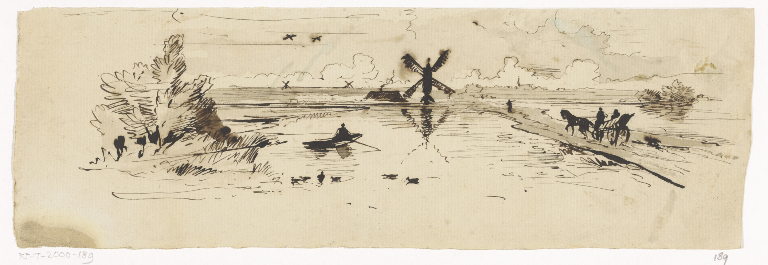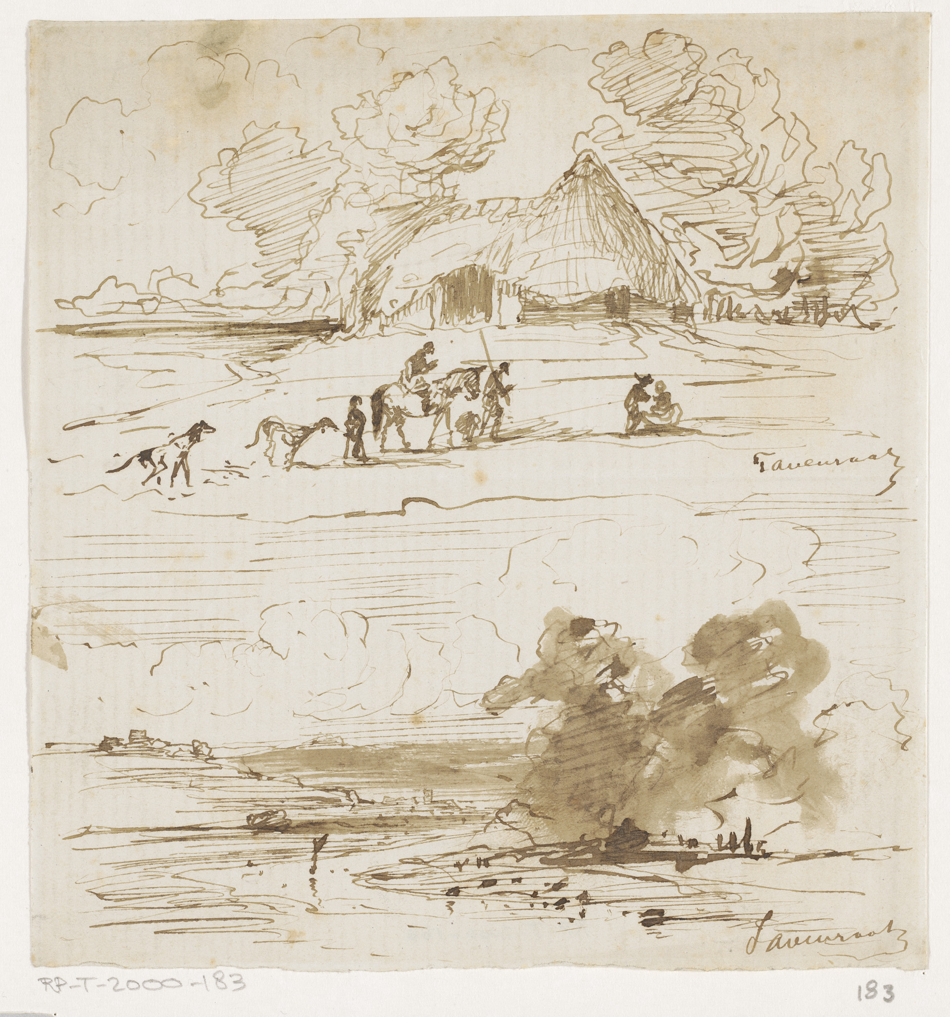 Twee schetsen van landschappen met figuren