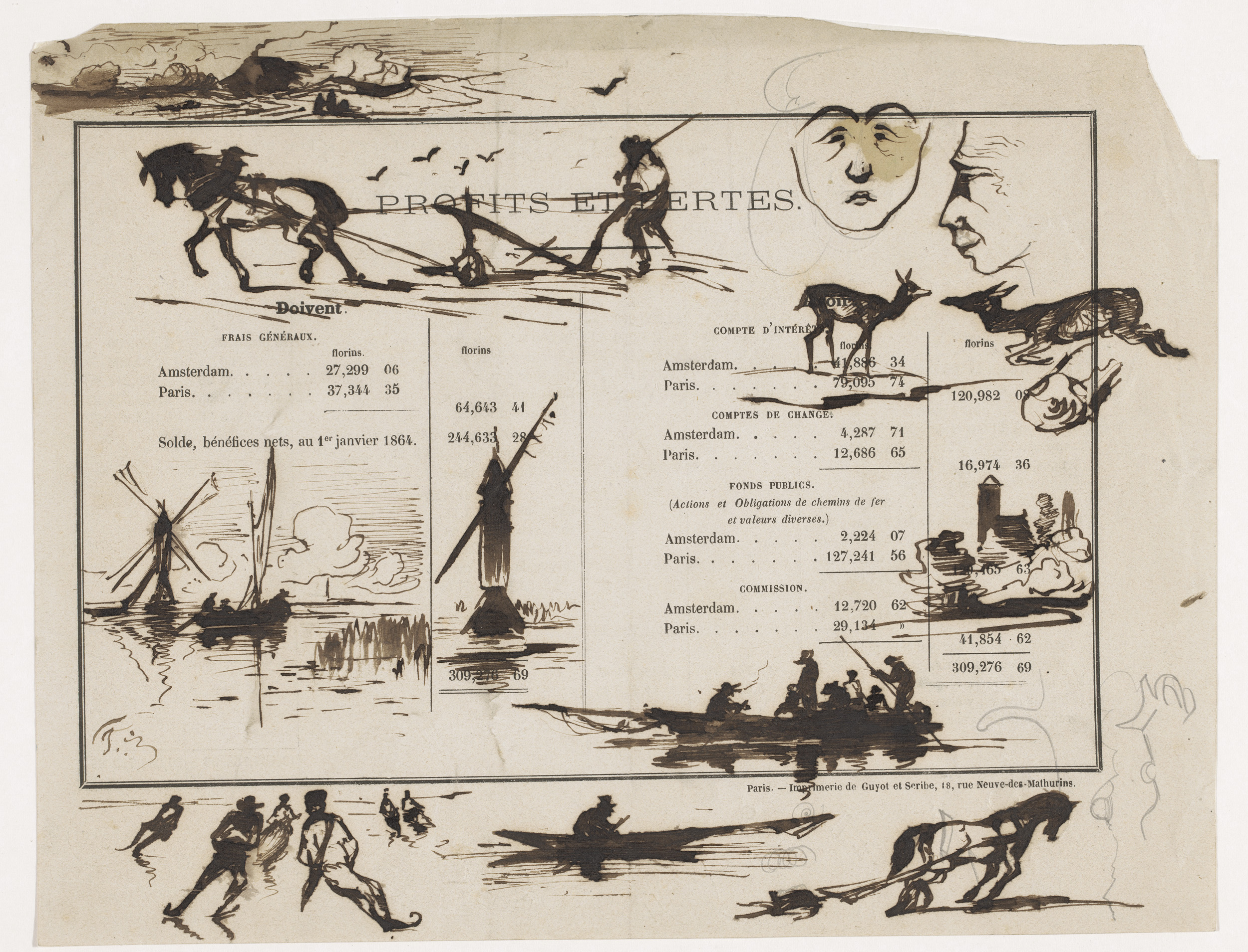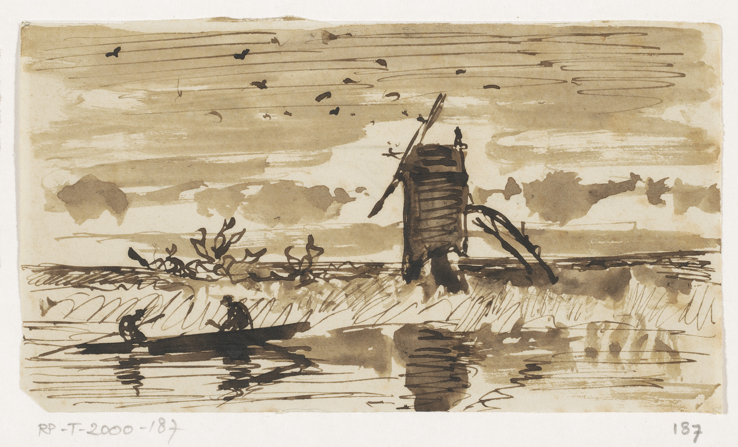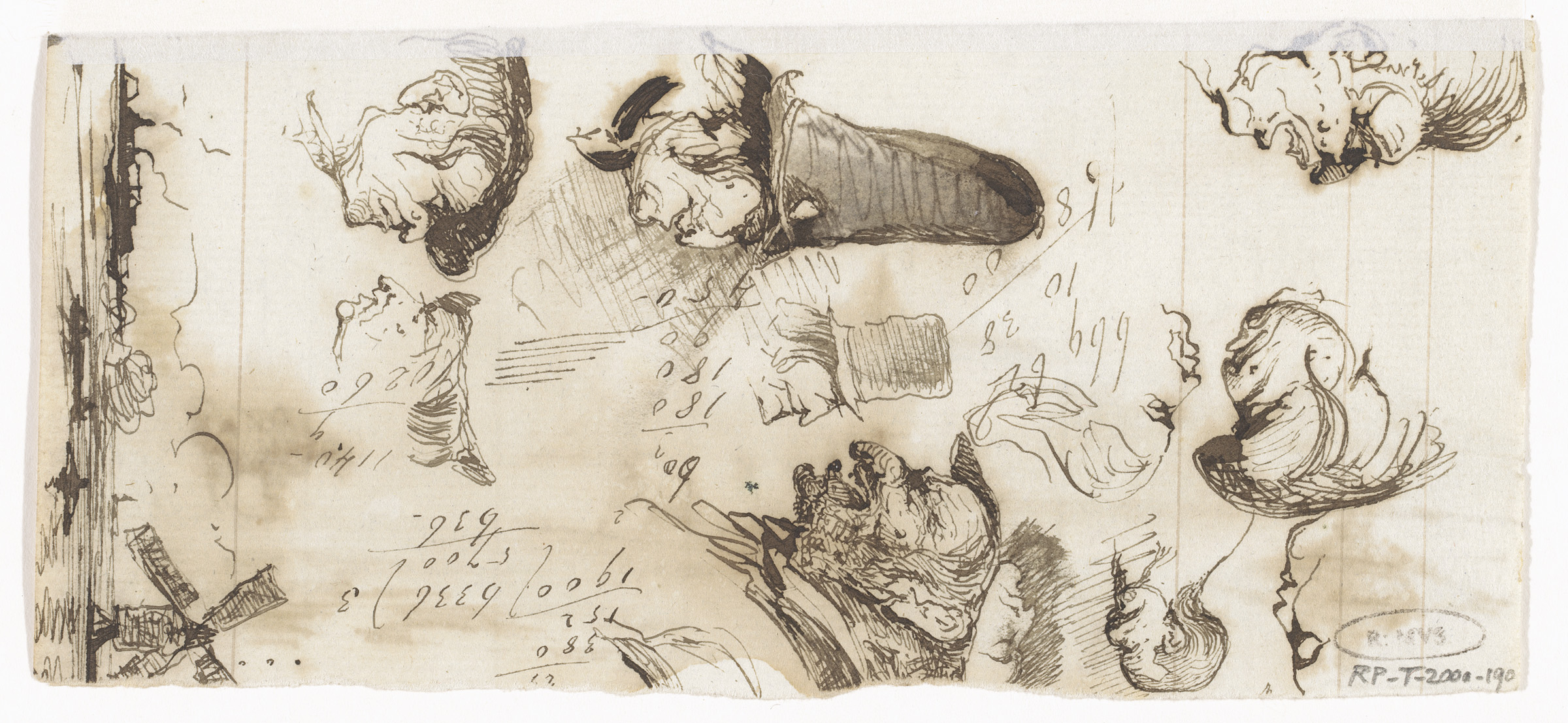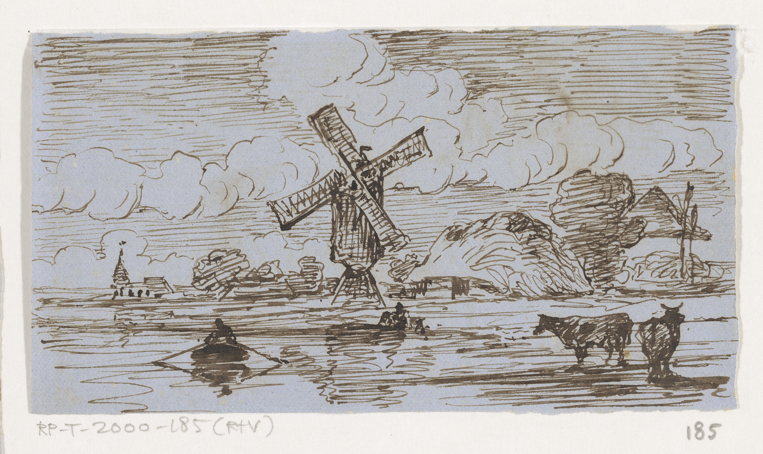 Twee schetsen van landschappen met figuren