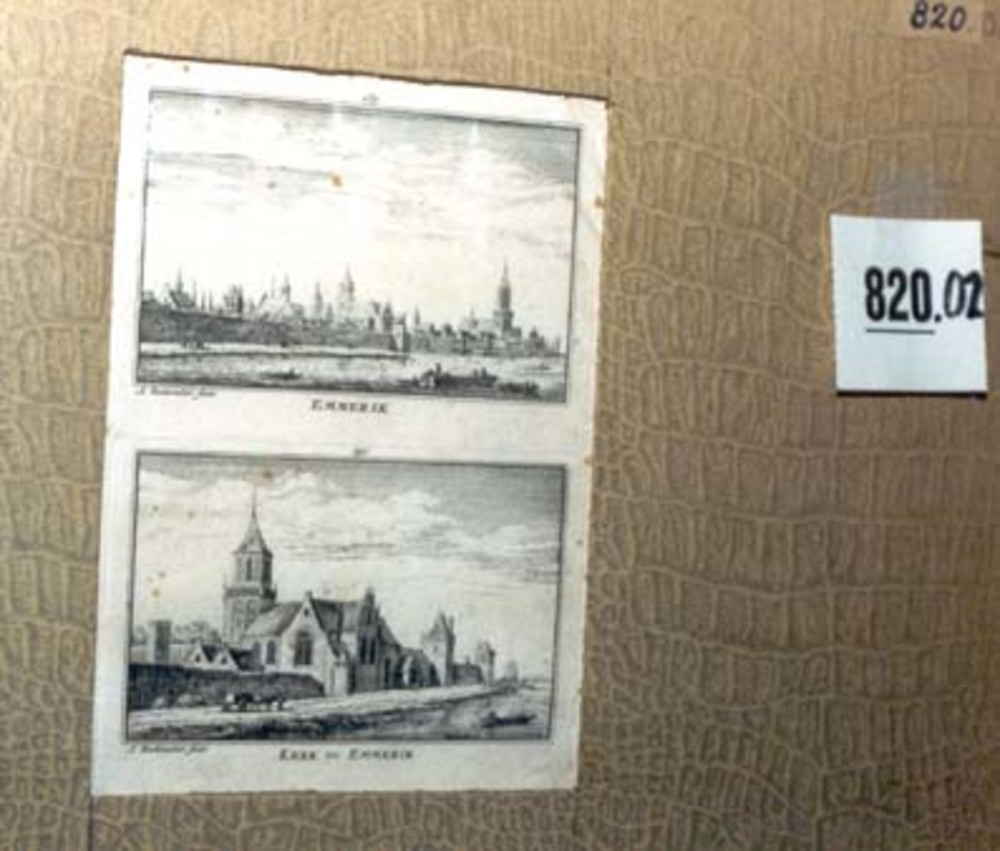 Gravure "Twee zichten op Emmerik" op papier