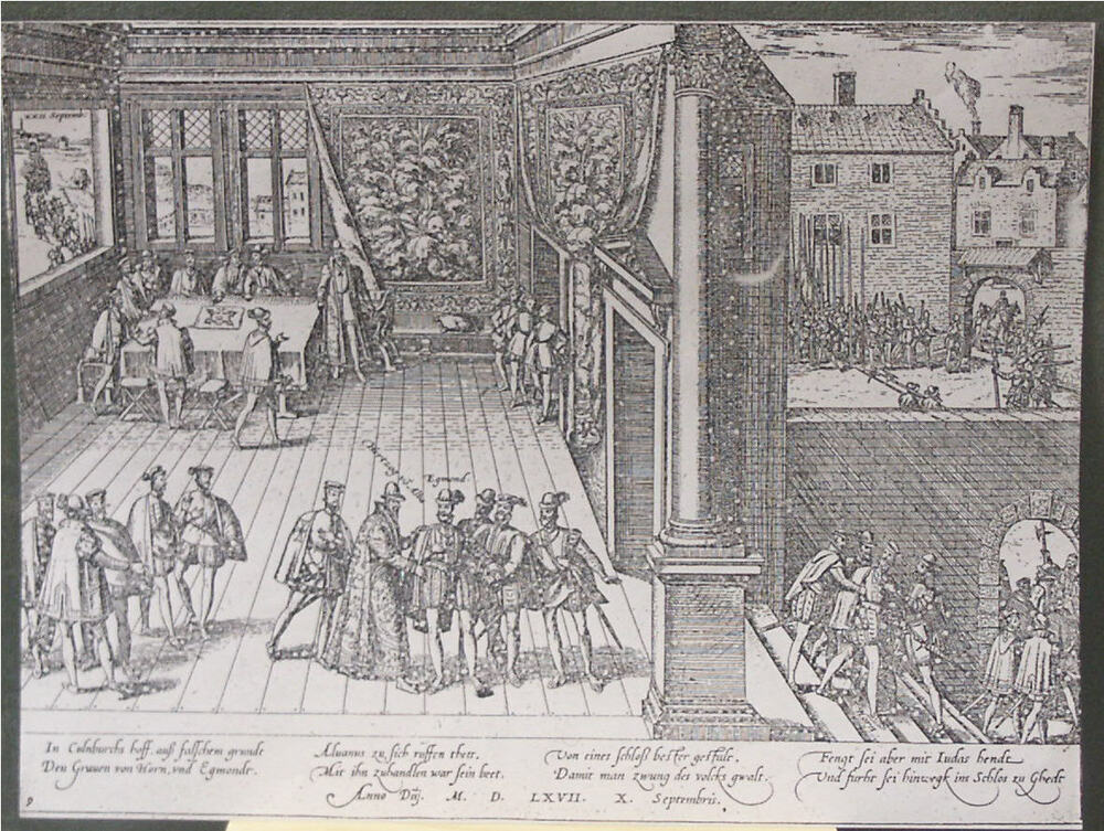Gravure, voorstellende de gevangenneming van Egmond ...