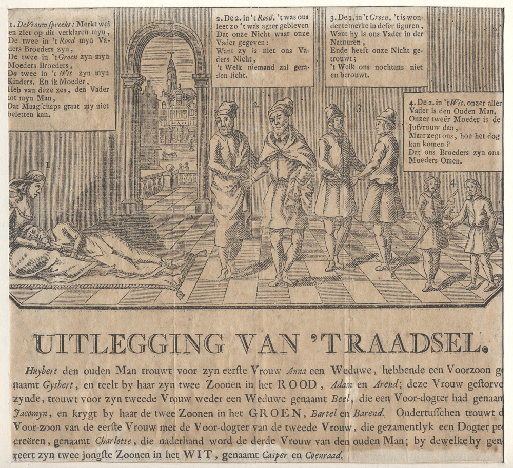 Aanblik op de "Uitlegging van 't Raadsel". In een ve...
