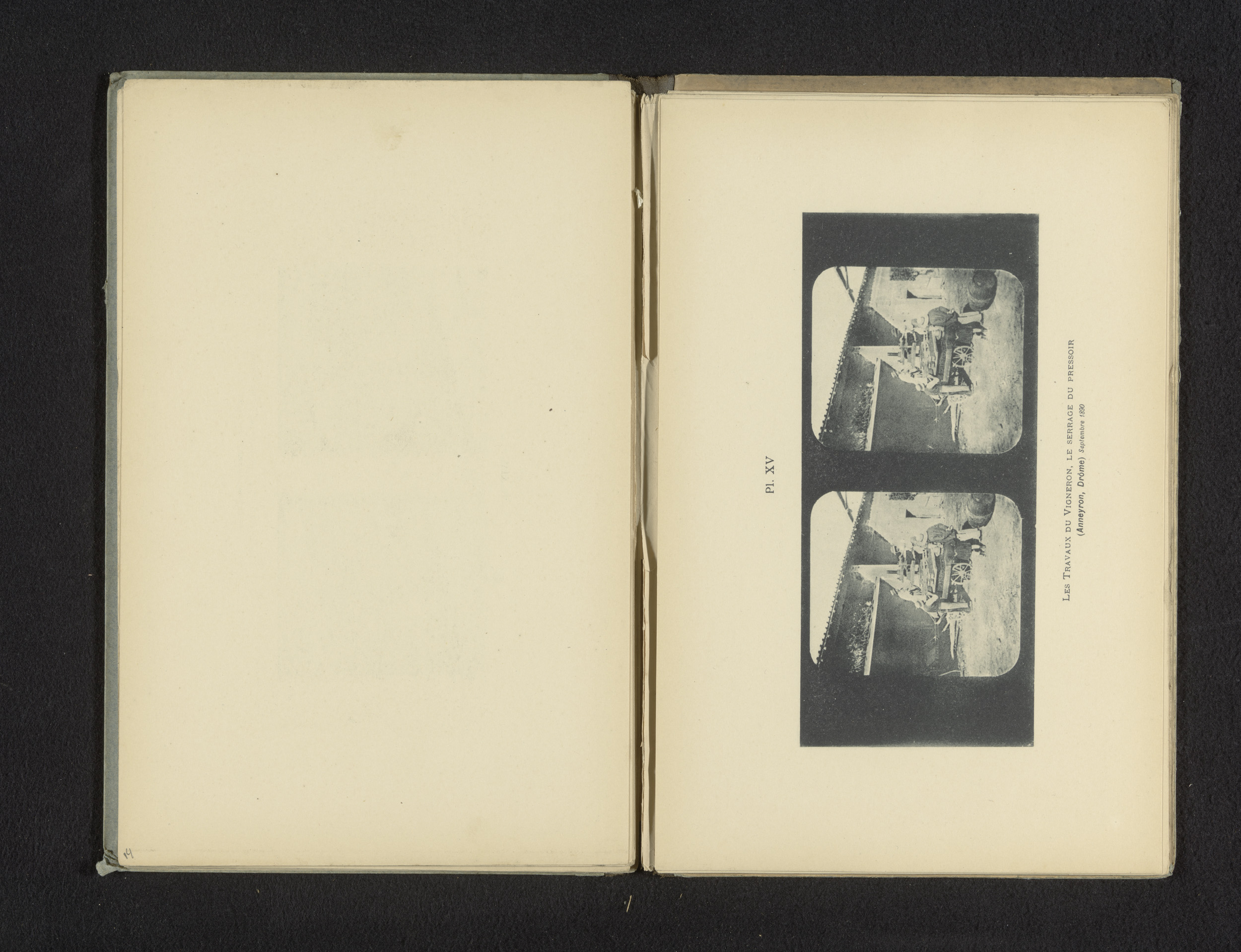 Stereofoto van het vastklemmen van de druivenpers