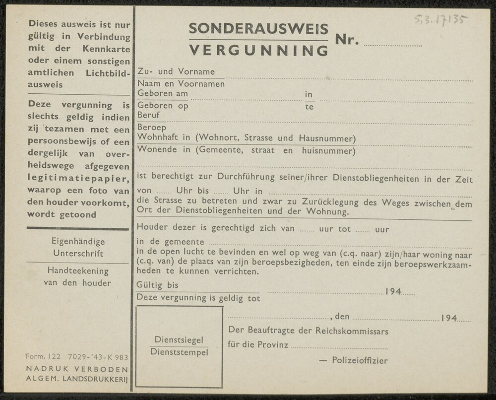 Sonderausweis/vergunning (K.983) blanco